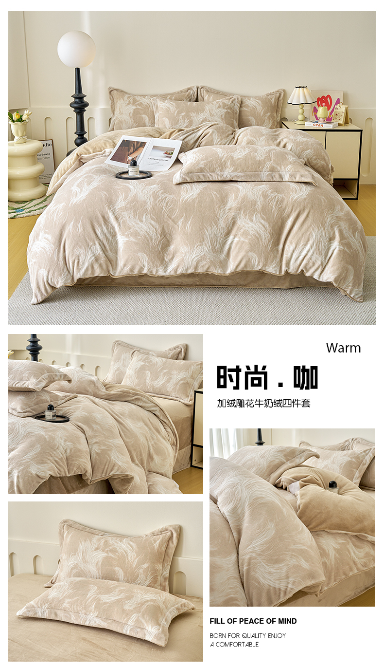 贝诗梦 2025新款高克重230克5D雕花牛奶绒四件套 格调咖,格调咖
