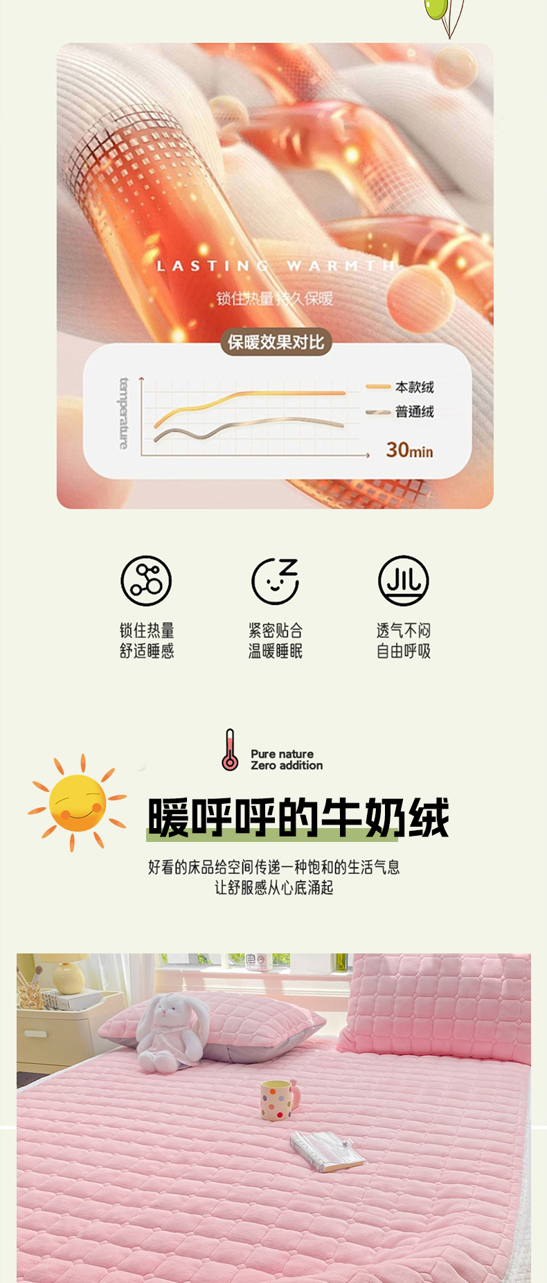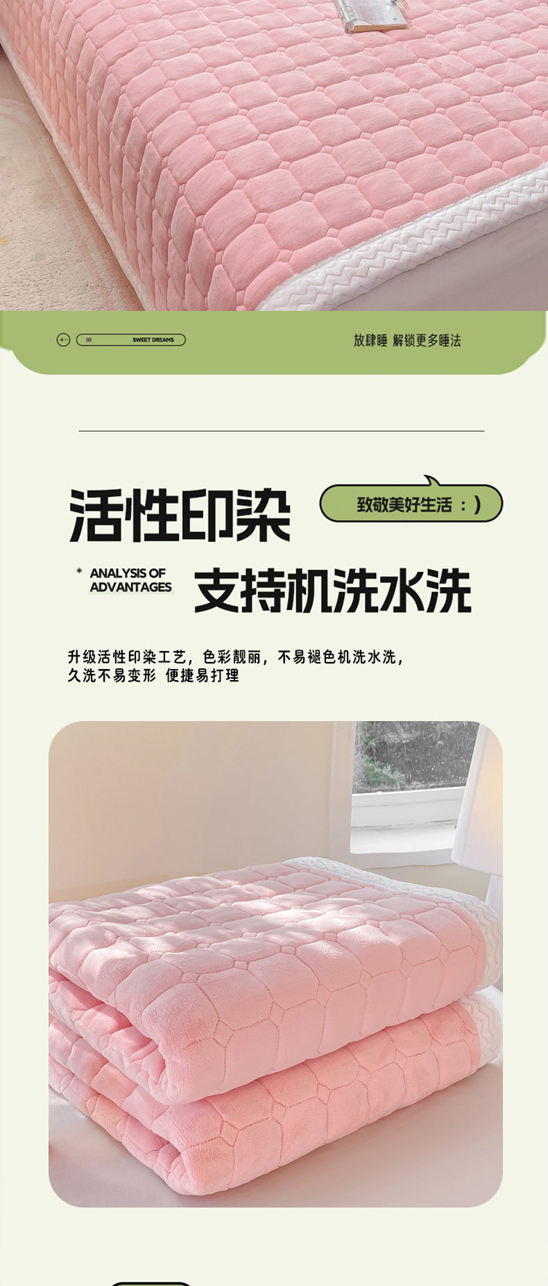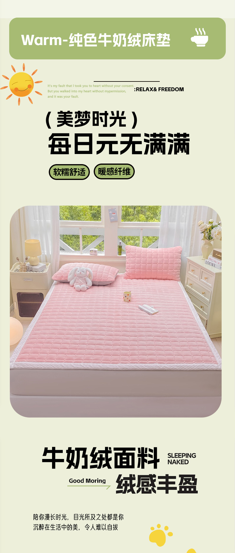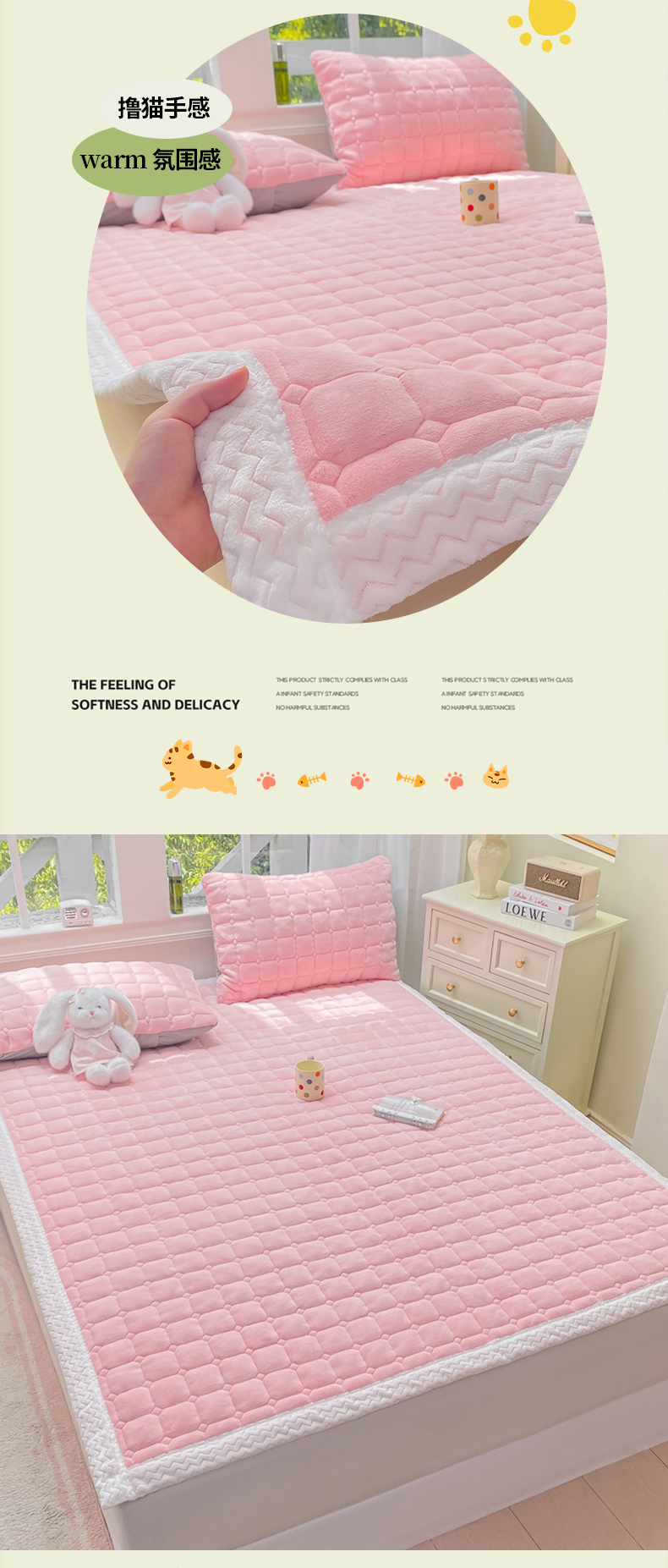 (总)麒东家纺 2025年新款兔毛绒泡泡绒夹棉床垫,粉色,咖色,绿色,米白,浅灰,深灰,天蓝