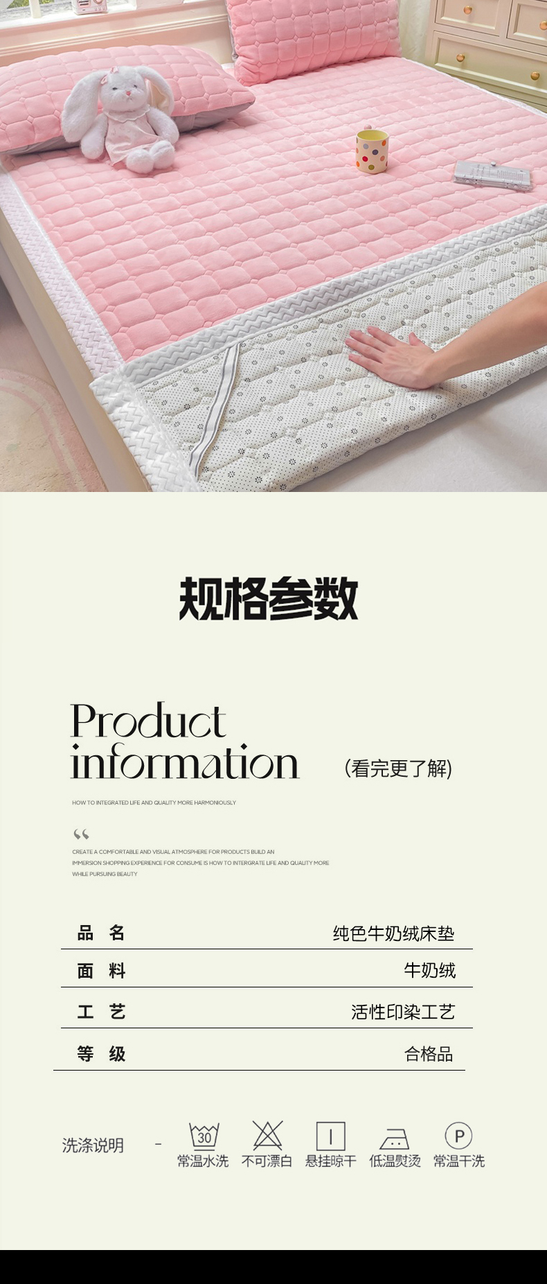 商品名称:(总)2025年新款纯色牛奶绒夹棉床垫-风格一