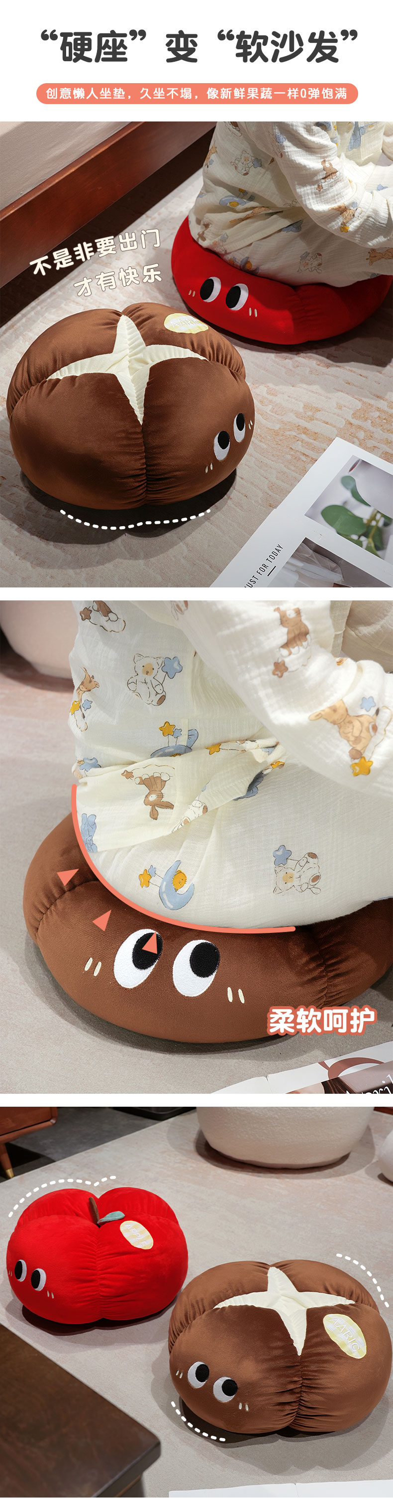 商品名称:(总)仟亿莱 2025新款ins大眼果蔬墩墩坐垫