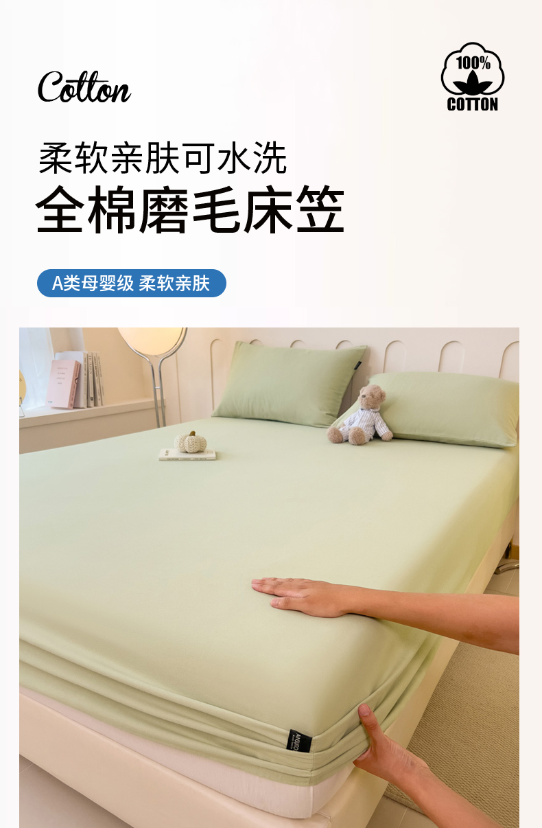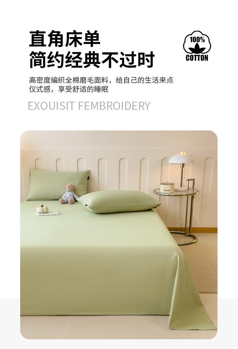 • 91家纺网 家纺一手货源 找家纺 席世家 2025新款全棉纯棉磨毛单品床笠单件床笠单品床单单件床单 茉香绿