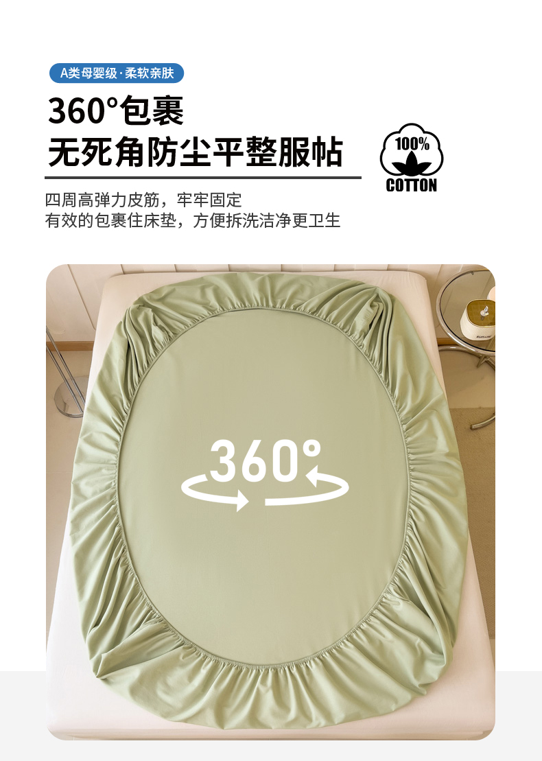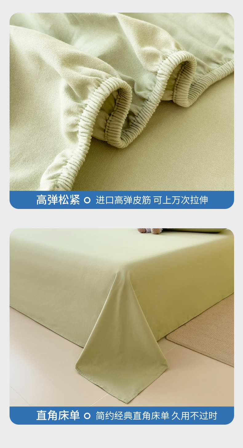 席世家 2025新款全棉纯棉磨毛单品床笠单件床笠单品床单单件床单 茉香绿