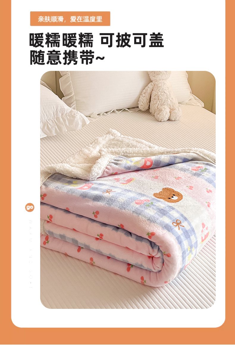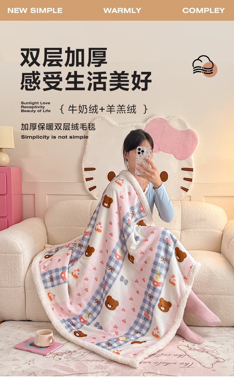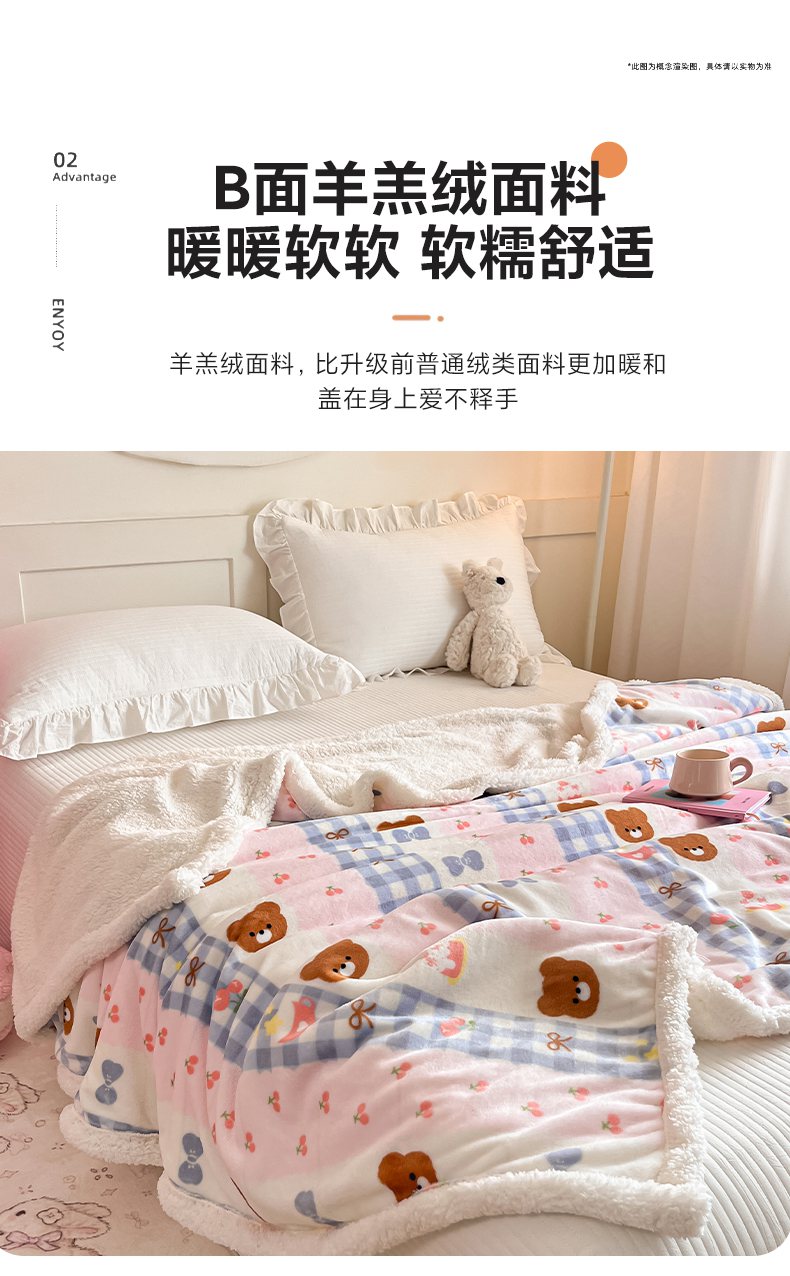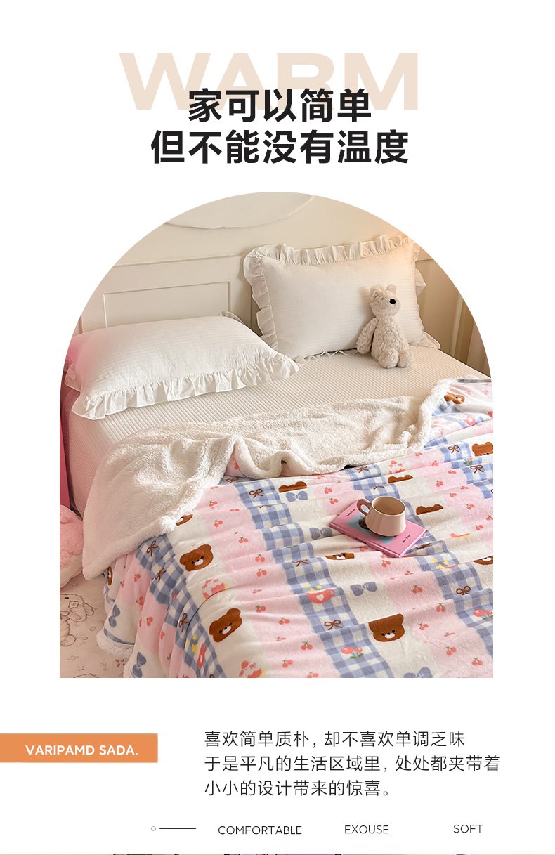 川悦生活 2025新款牛奶绒羊羔绒毯子毛毯 毛毯奶朵布丁熊