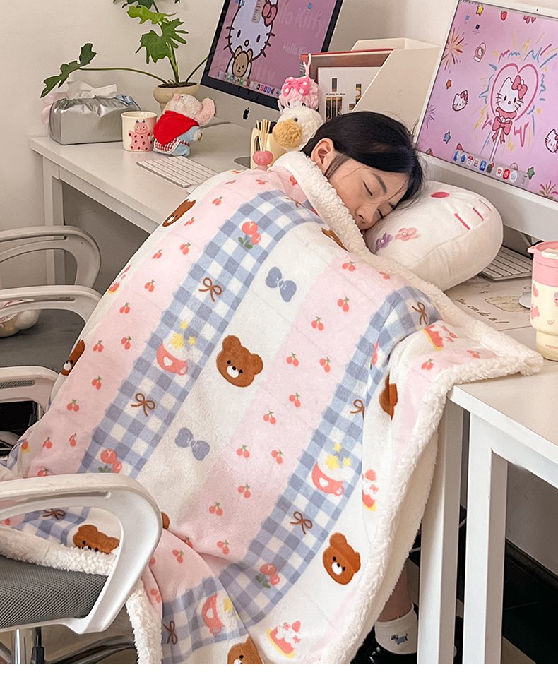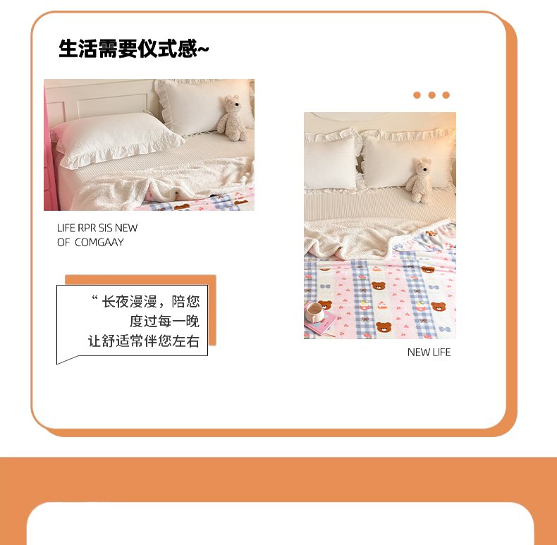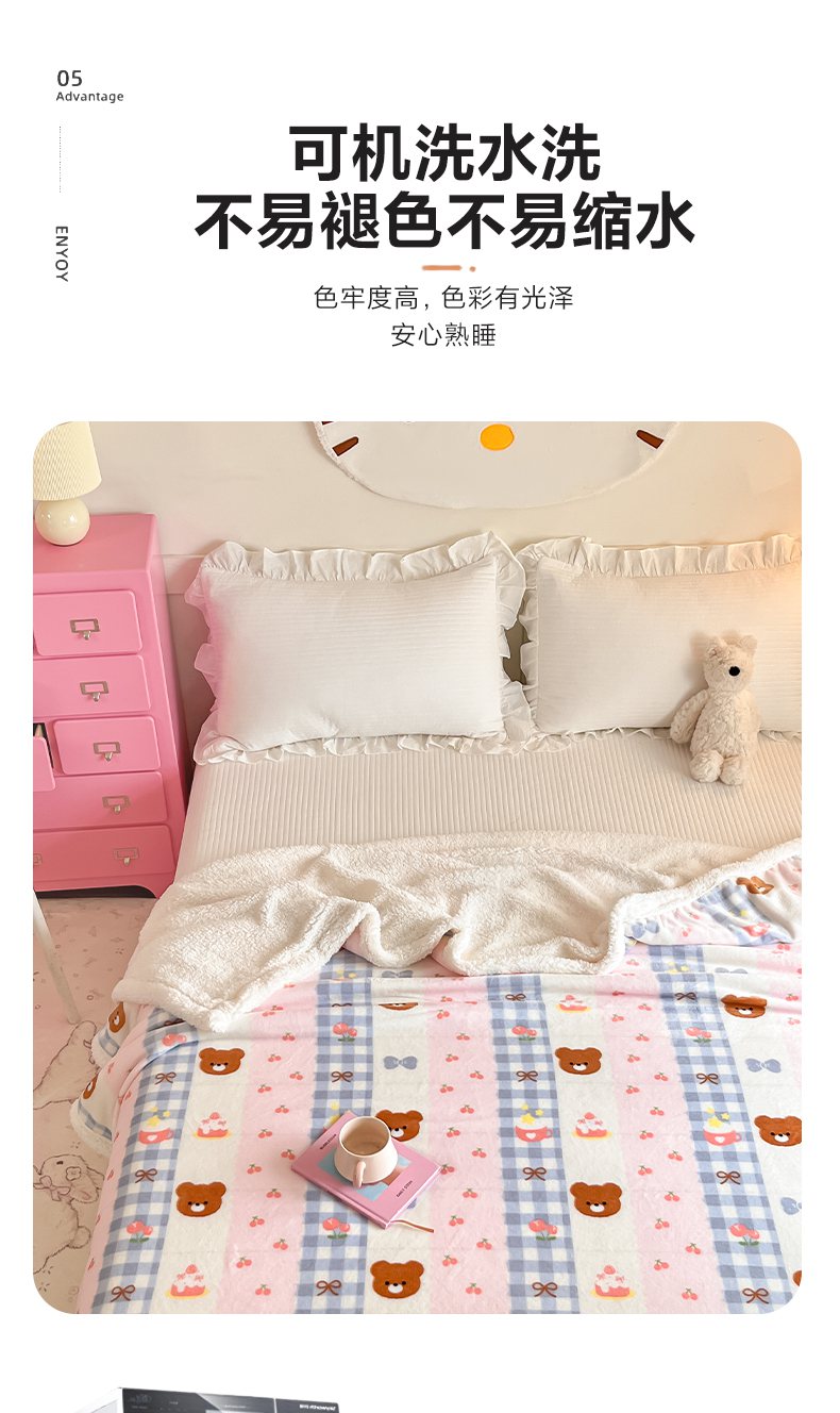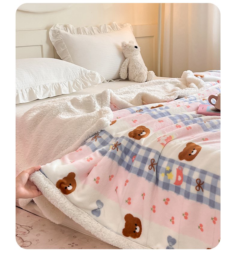 川悦生活 2025新款牛奶绒羊羔绒毯子毛毯 毛毯奶朵布丁熊