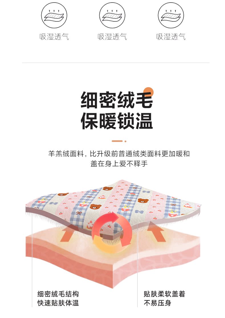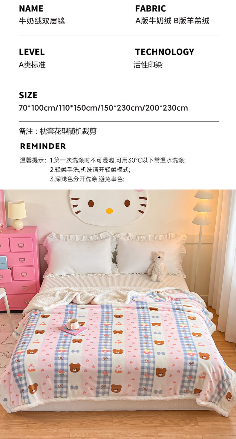 商品名称:川悦生活 2025新款牛奶绒羊羔绒毯子毛毯 毛毯奶朵布丁熊