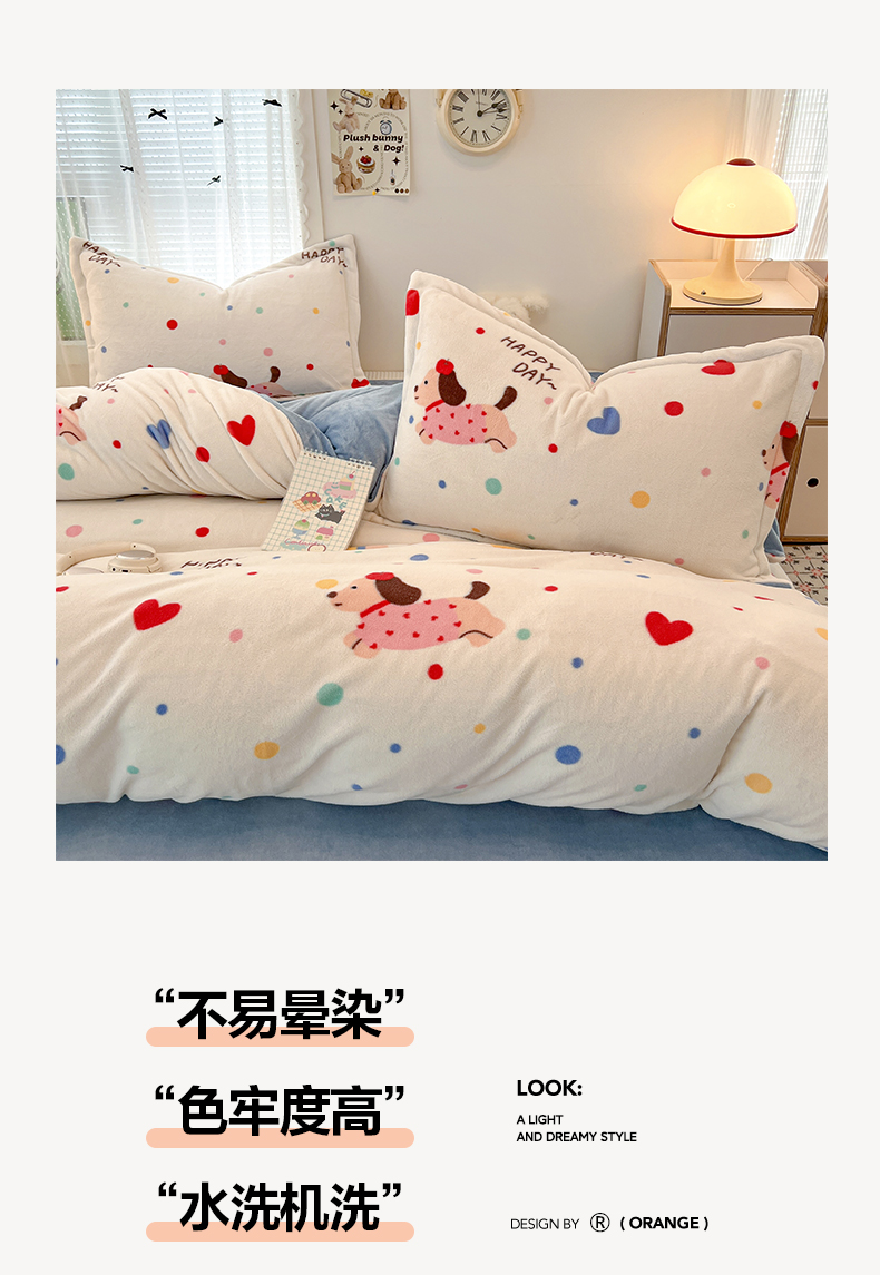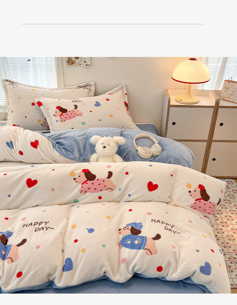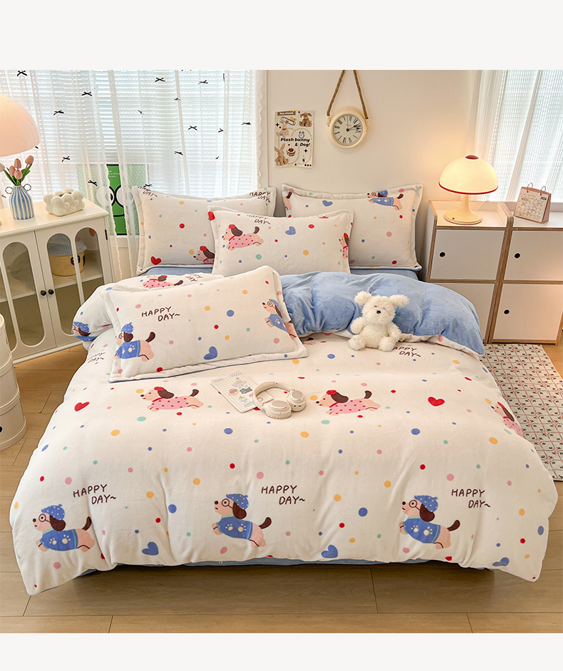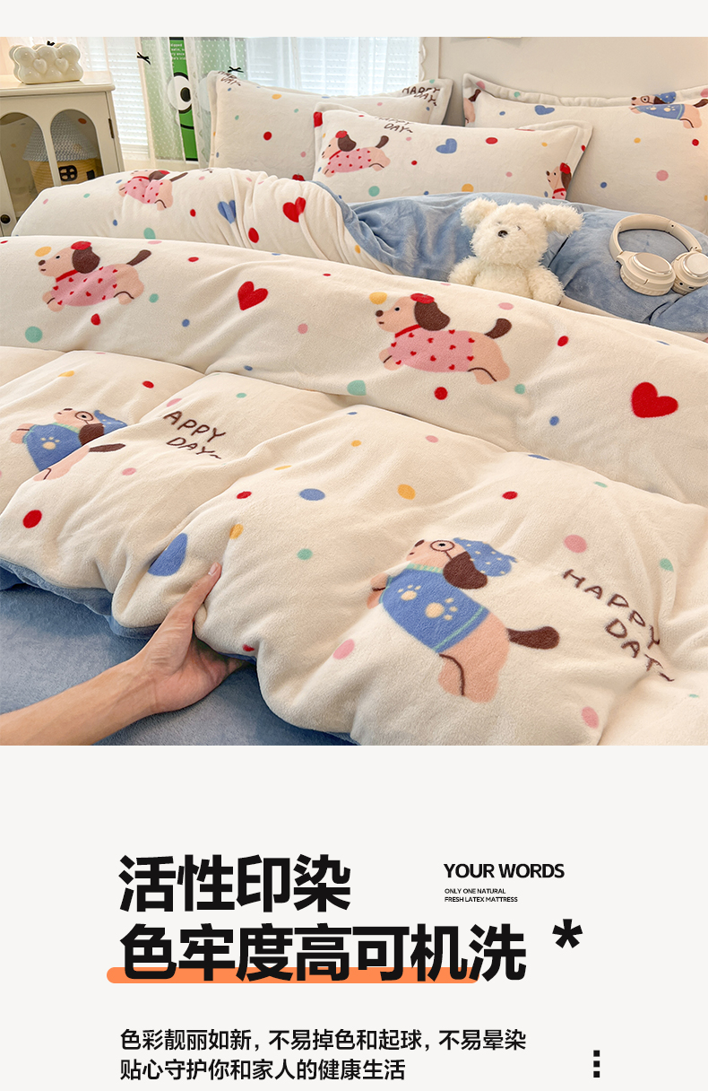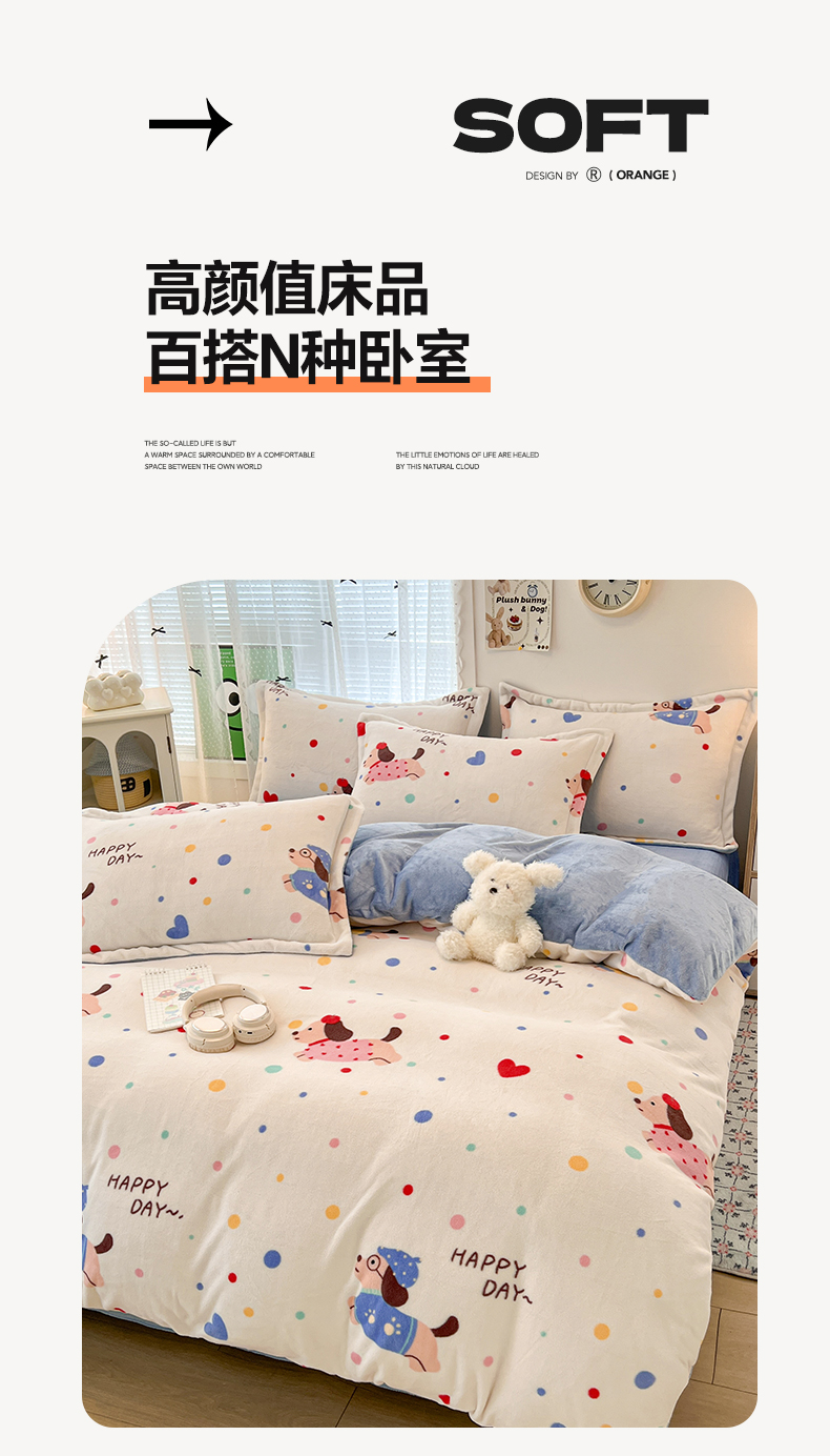 当前位置: 91家纺网 > 商品网购 > 床品套件 > 四件套 > 牛奶绒四件套 > 启发 2025新款高克重小清新牛奶绒印花四件套 欢乐小狗
