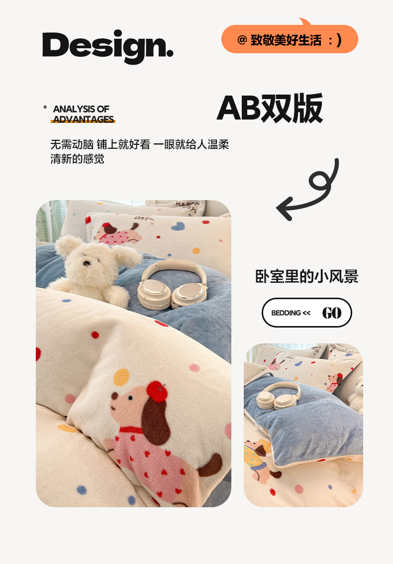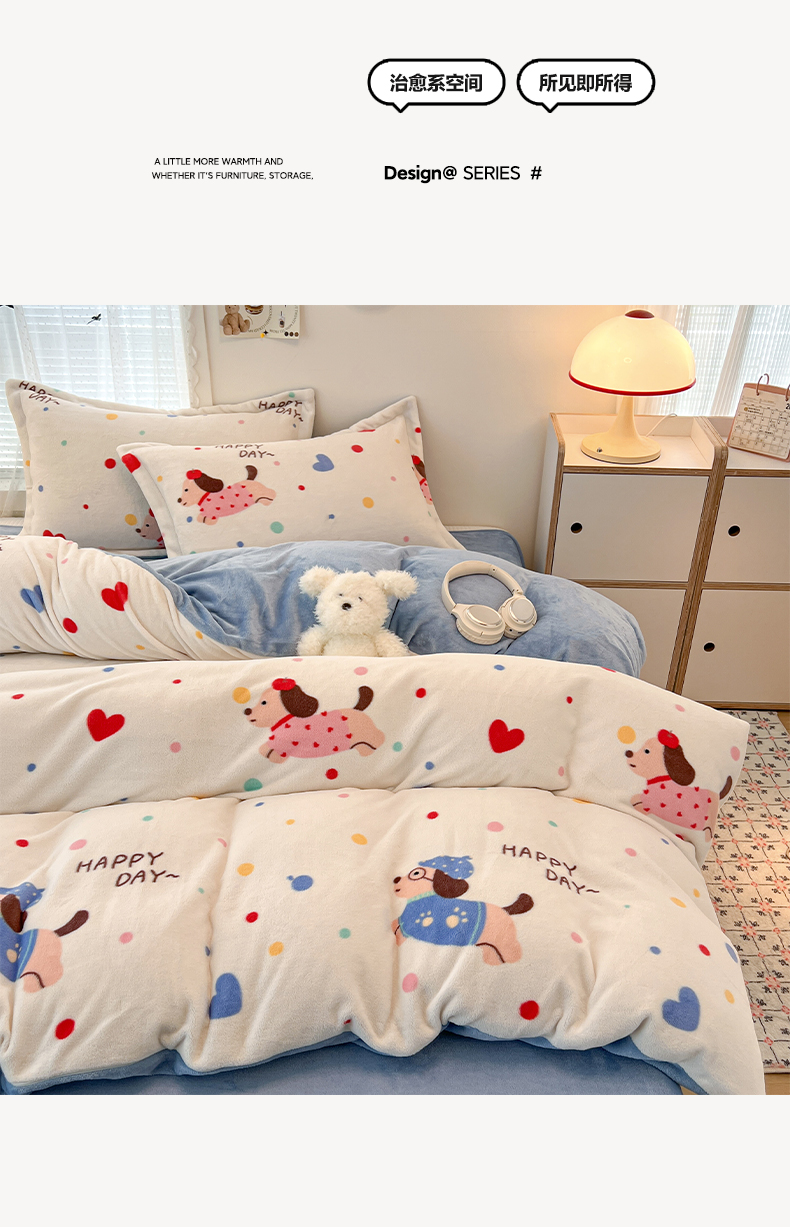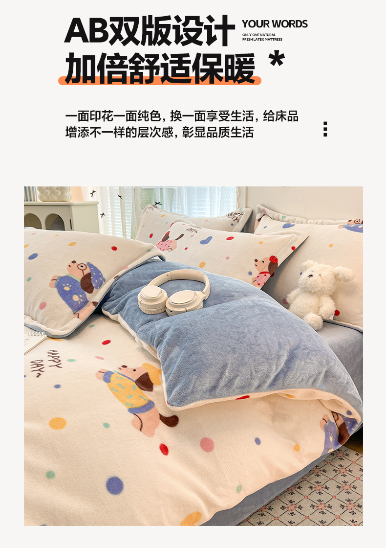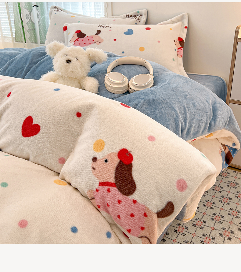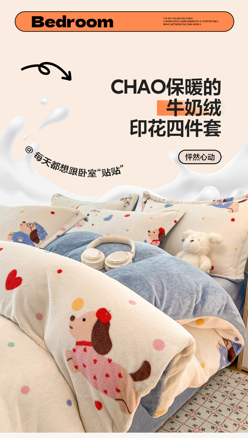 当前位置: 91家纺网 > 商品网购 > 床品套件 > 四件套 > 牛奶绒四件套 > 启发 2025新款高克重小清新牛奶绒印花四件套 欢乐小狗