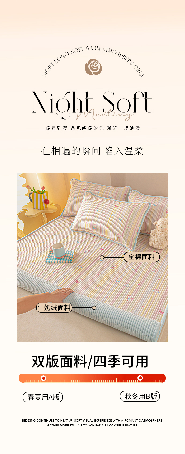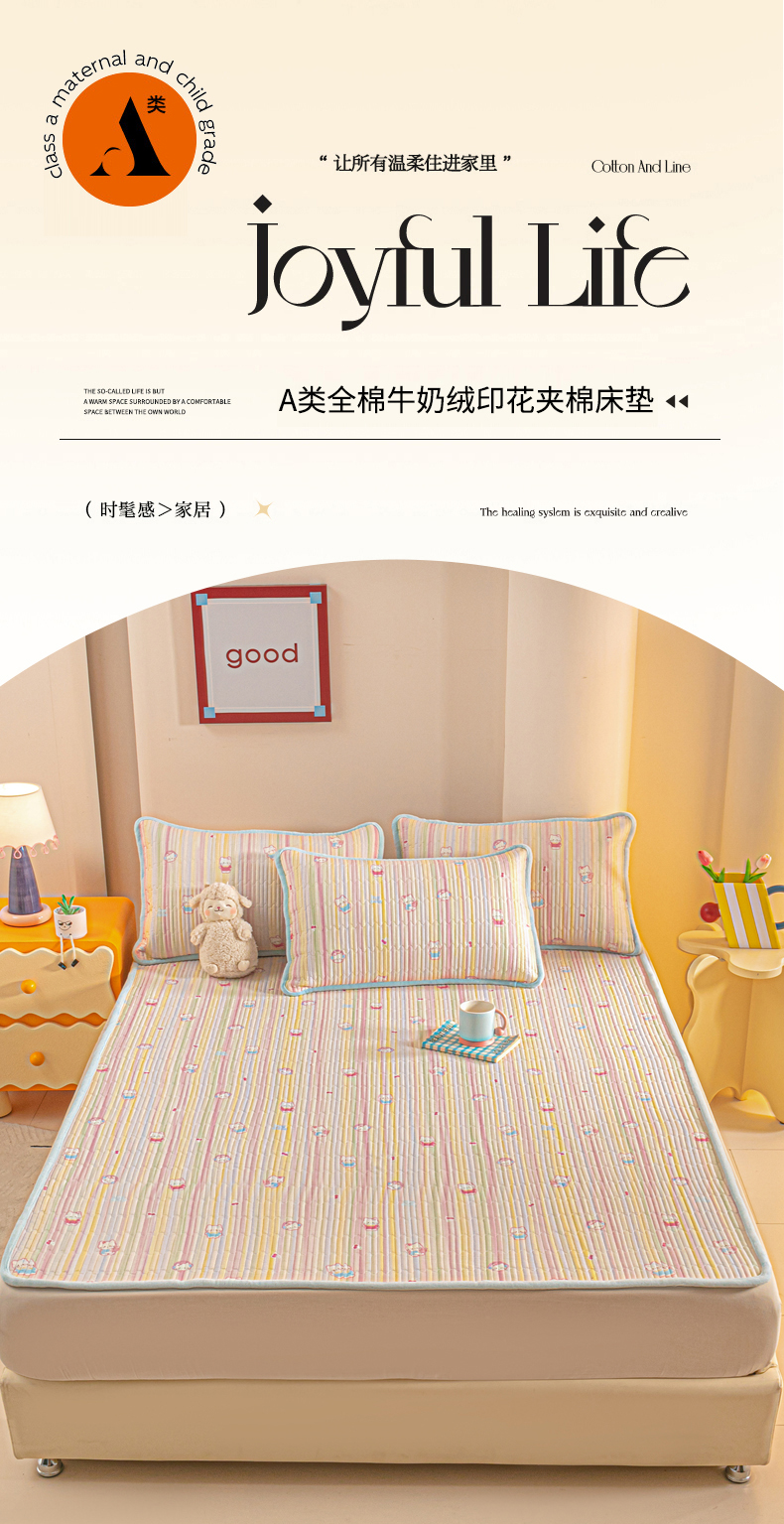 (总)恒尚居 2025新款A版全棉B版牛奶绒夹棉床褥垫A类四季可用学生床垫-秋冬款三件套系列三