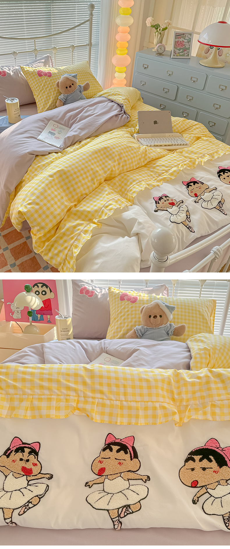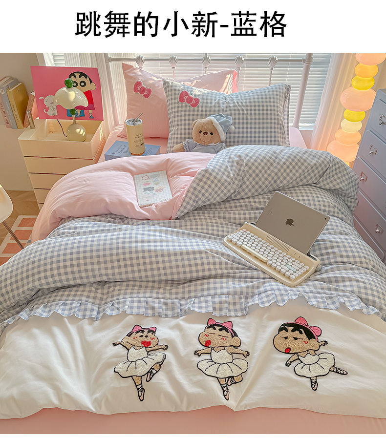 当前位置: 91家纺网 > 商品网购 > 床品套件 > 四件套 > 水洗棉四件套 > 子钦家纺 2025云朵棉水洗棉新款花边拼接毛巾绣床单床笠床裙四件套-跳舞的小新 跳舞的小新-黄格