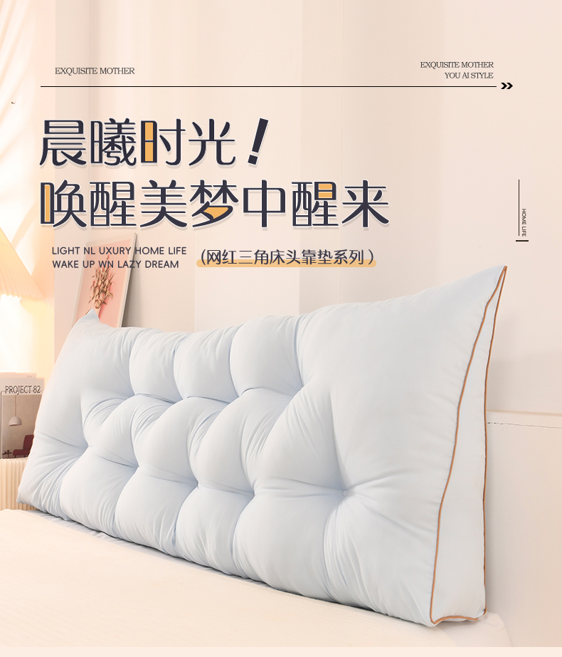 商品名称:碧尔家居 2025新款床头靠垫三角床上靠枕卧室榻榻米软包双人大靠背免拆洗 浅蓝