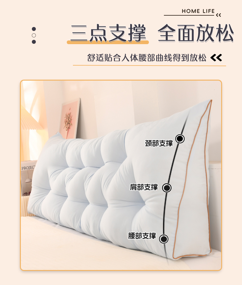(总)碧尔家居 2025新款时尚床头靠枕护腰大靠背榻榻米三角靠垫飘窗看书加厚软包防撞免洗,卡其灰,蓝色,米白,深灰,天蓝