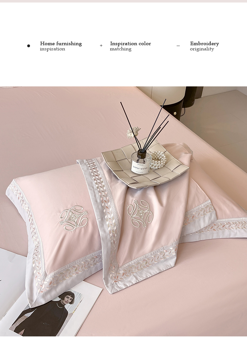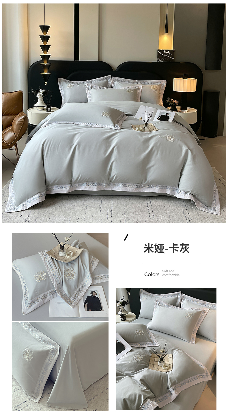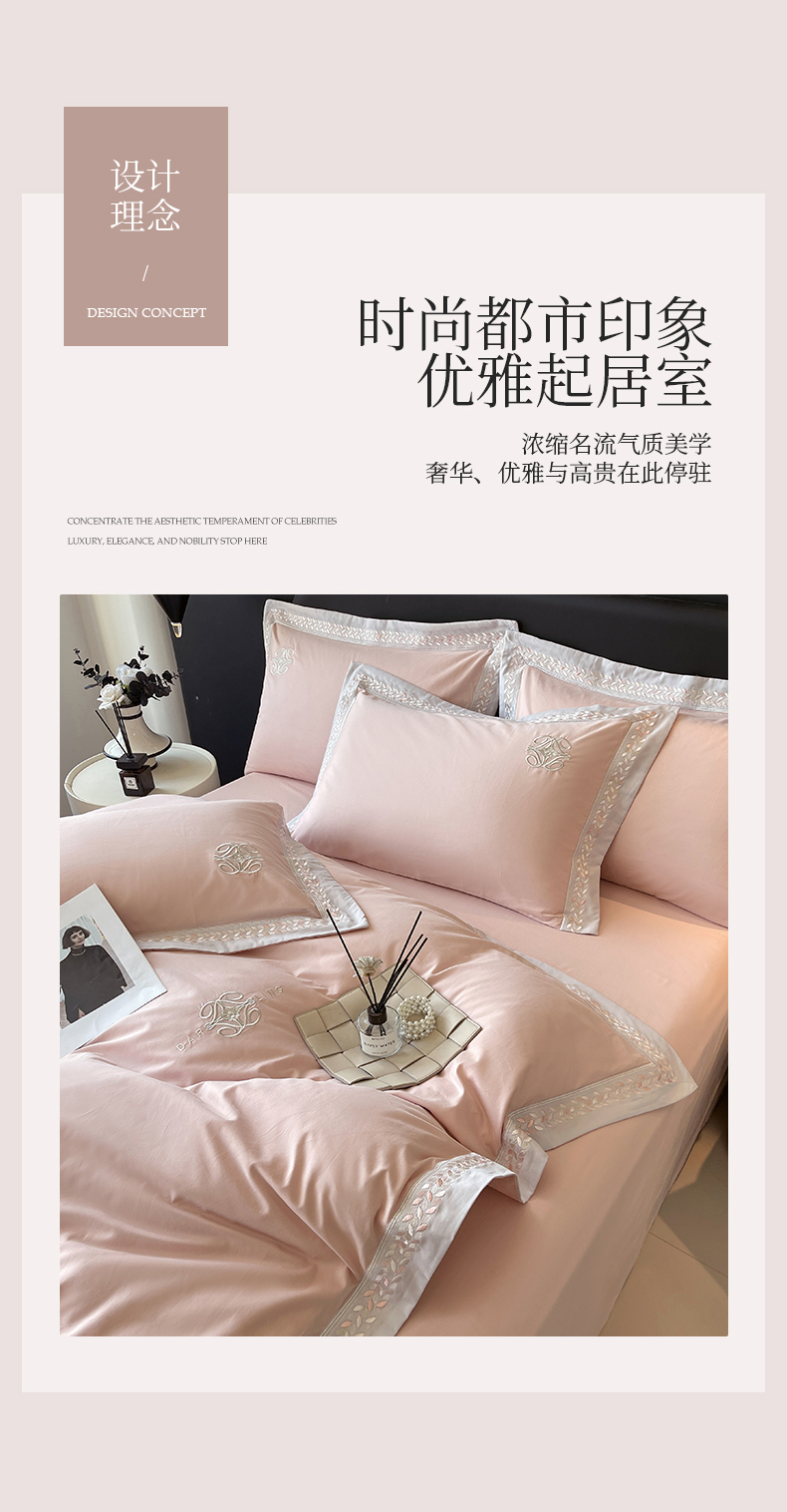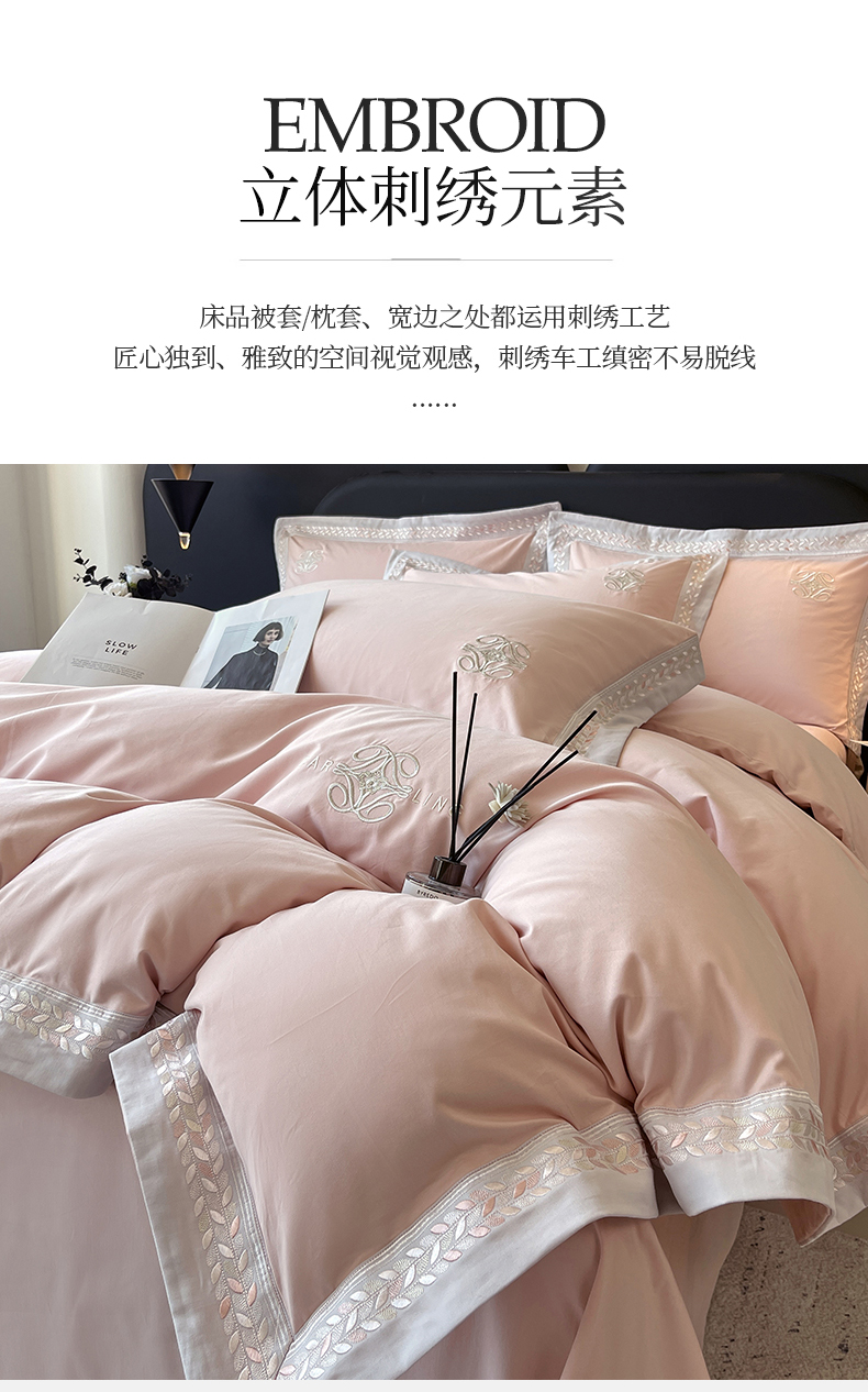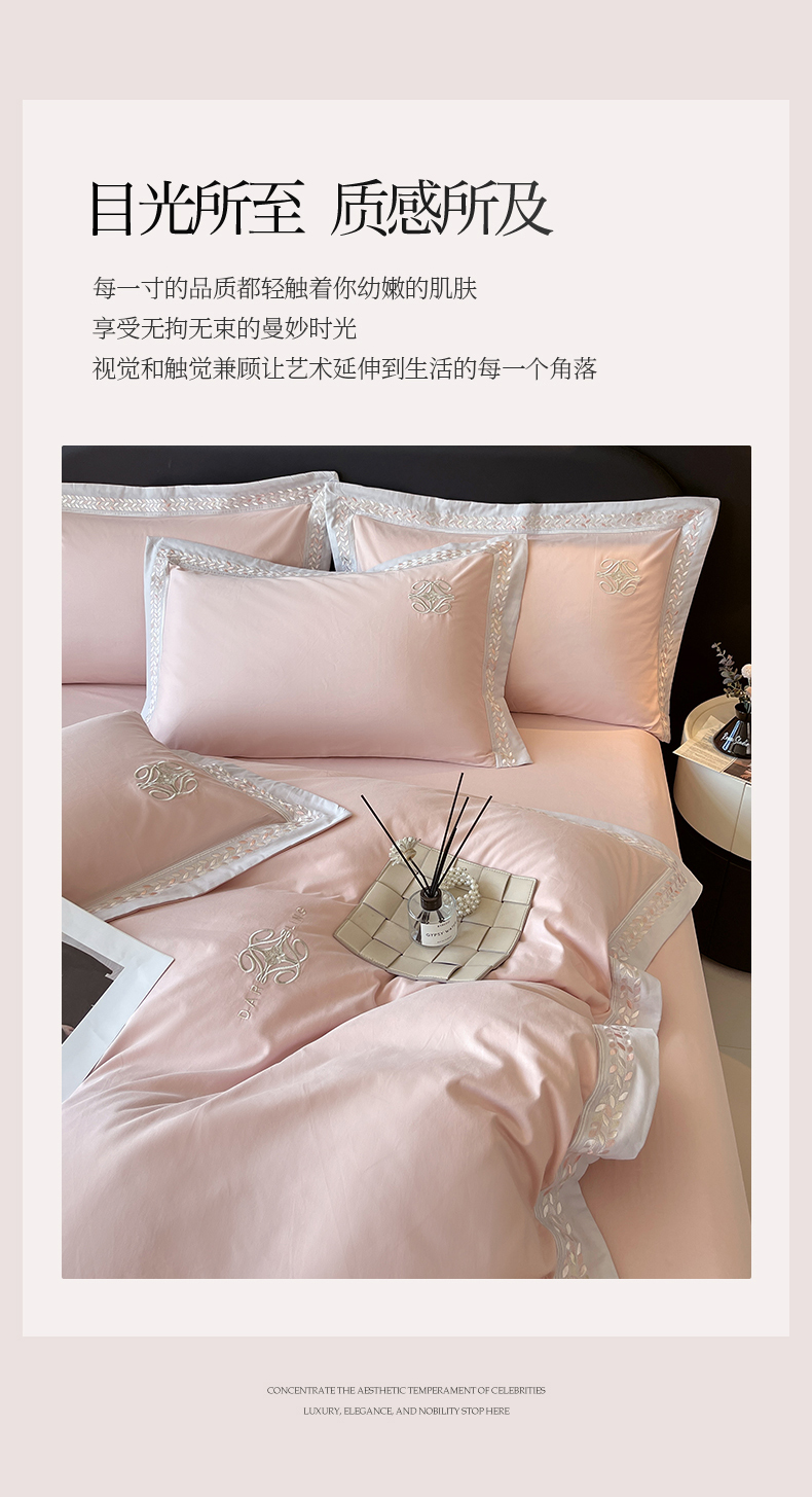 (总)鼎飞家纺 2025新款全棉磨毛刺绣四件套系列-梵,梵-卡布基诺,梵-雅灰,梵-奶油白,梵-蕊粉,梵-荞麦