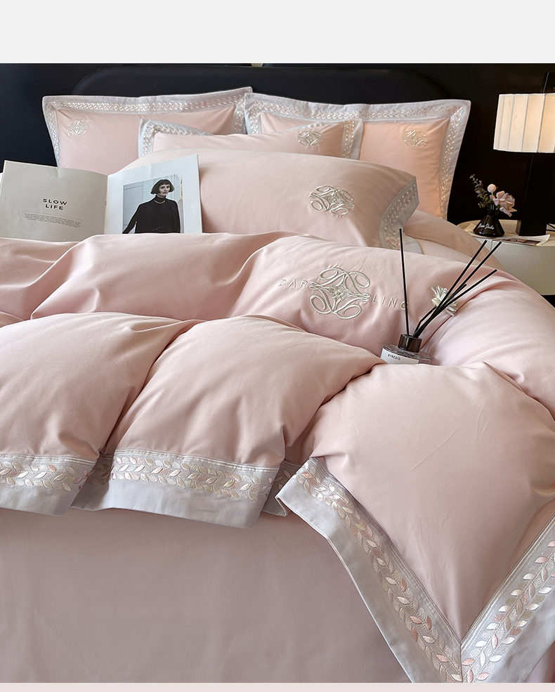 (总)鼎飞2022新款长绒棉绣花枫林系列四件套,枫林-雅白,枫林-嫣蓝,枫林-玉粉