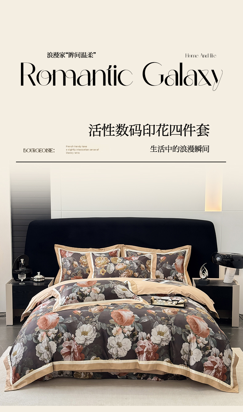 (总)小欢喜 2025新款50全棉数码印花四件套全棉四件套,繁花,芳华,瑰梦情缘,花间浅梦,满庭芳,莫奈花园,墨韵青花,塞纳森瑤,向阳花开