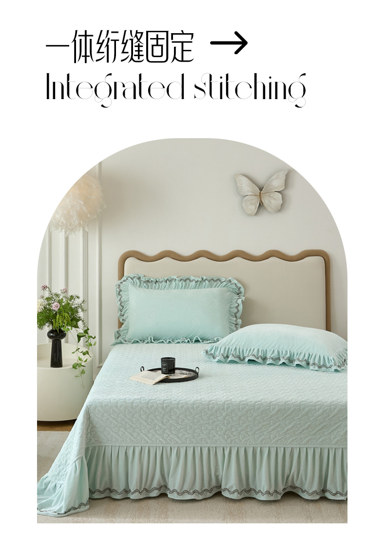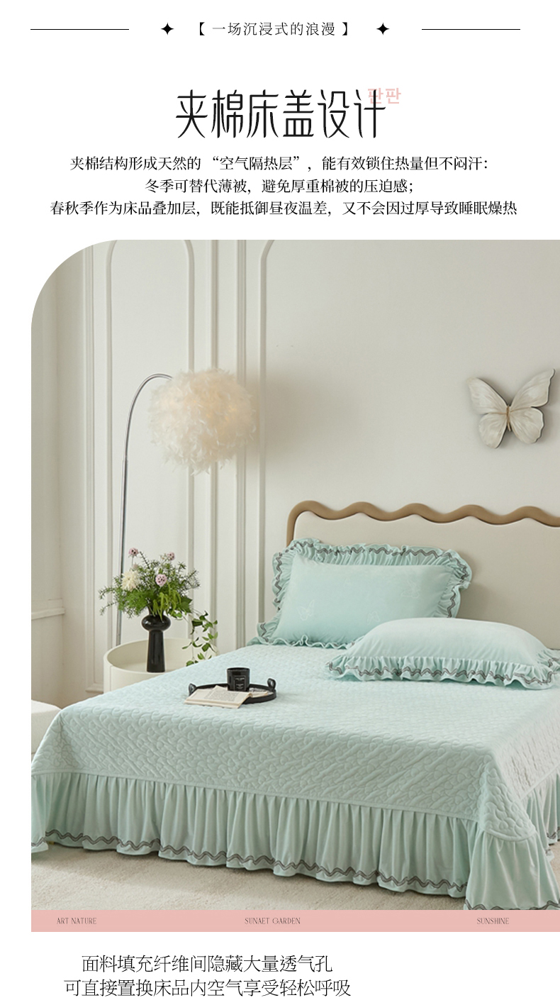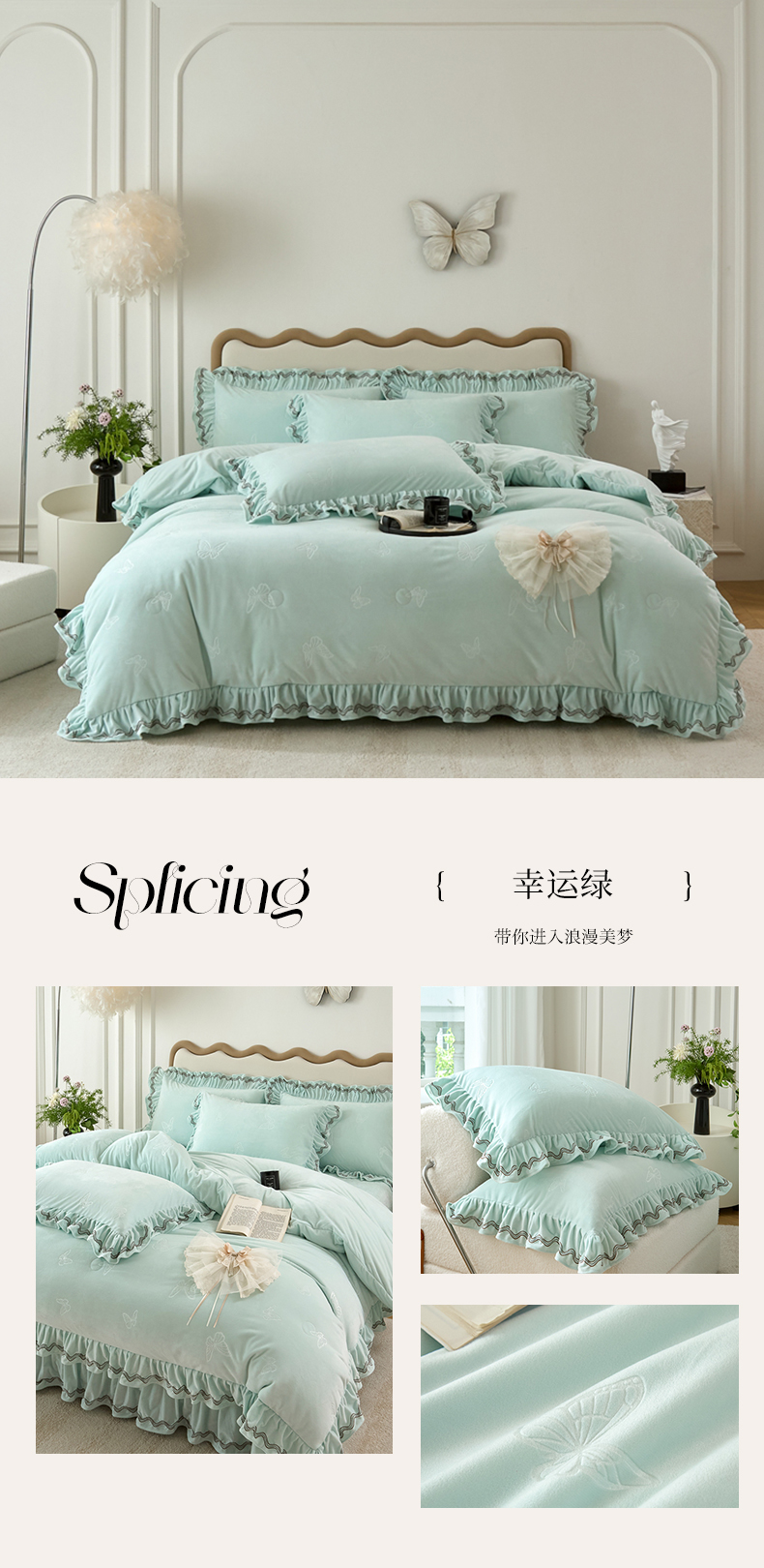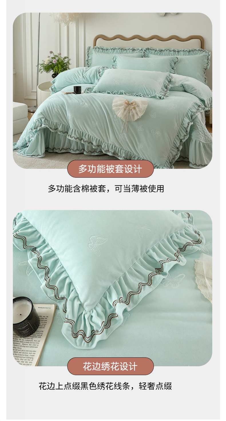 商品名称:金绣美居 2025新款婴儿绒多功能床盖款四件套-知音(控价不低于229/239) 知音-幸运绿