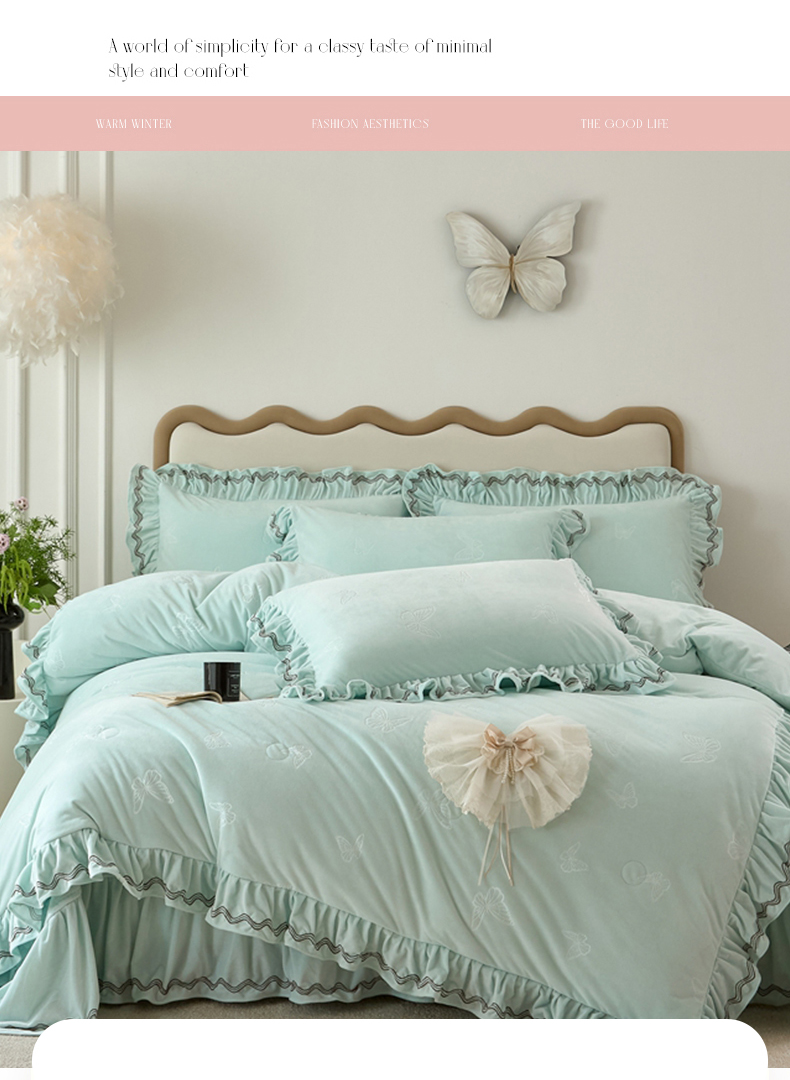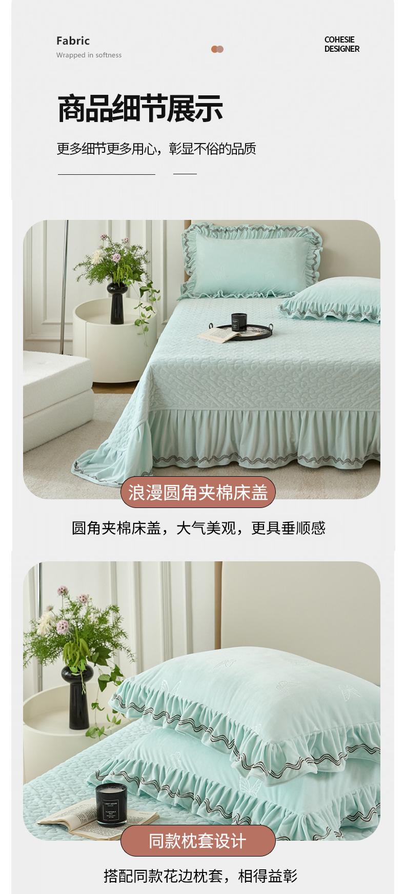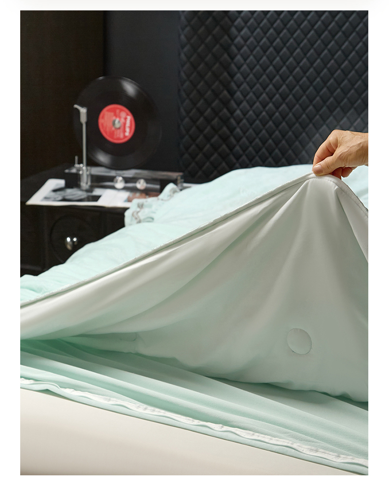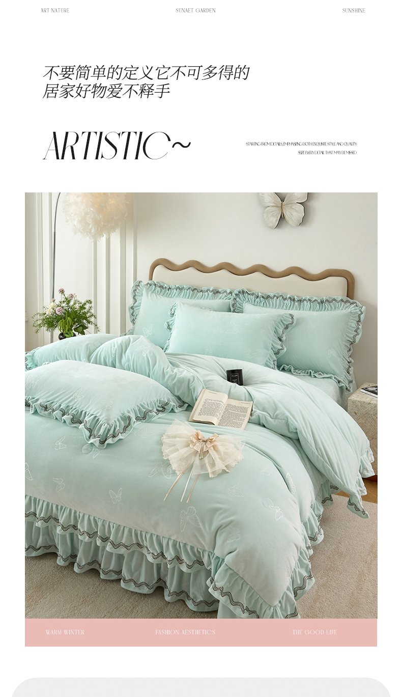 商品名称:金绣美居 2025新款婴儿绒多功能床盖款四件套-知音(控价不低于229/239) 知音-幸运绿