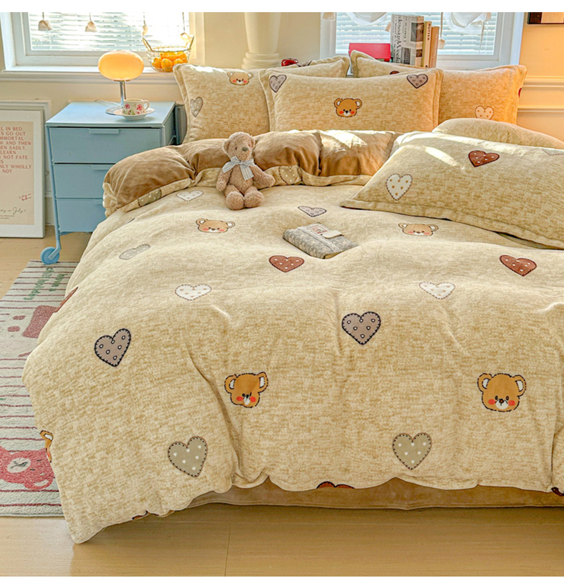商品名称:卡普 2025新款牛奶绒印花四件套萌萌熊