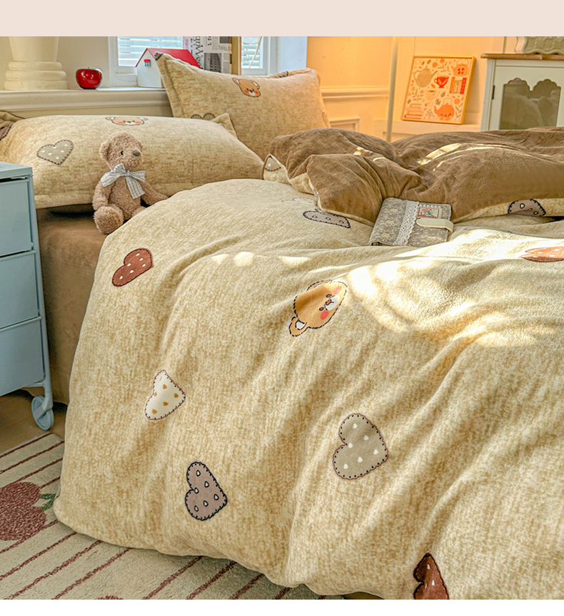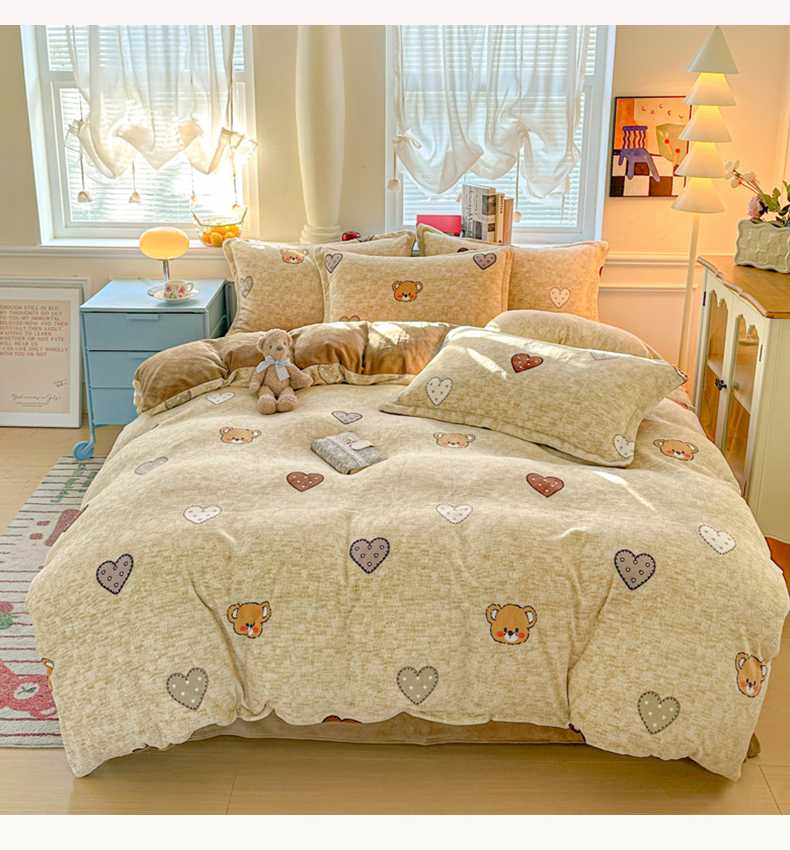 卡普 2025新款牛奶绒印花四件套萌萌熊
