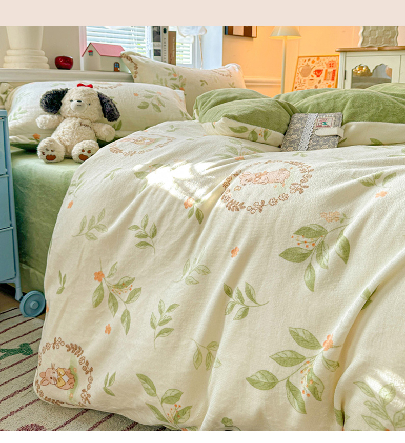 卡普二店 2025新款牛奶绒印花四件套森林小兔
