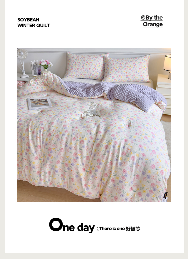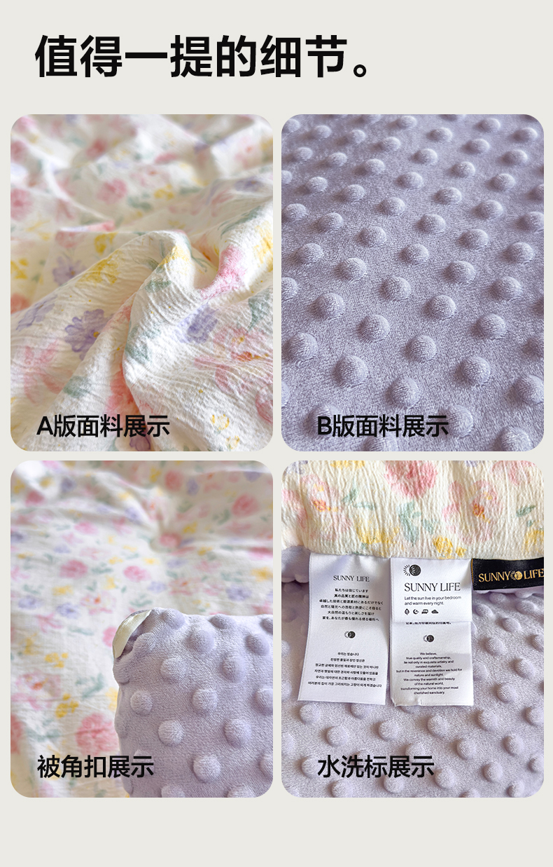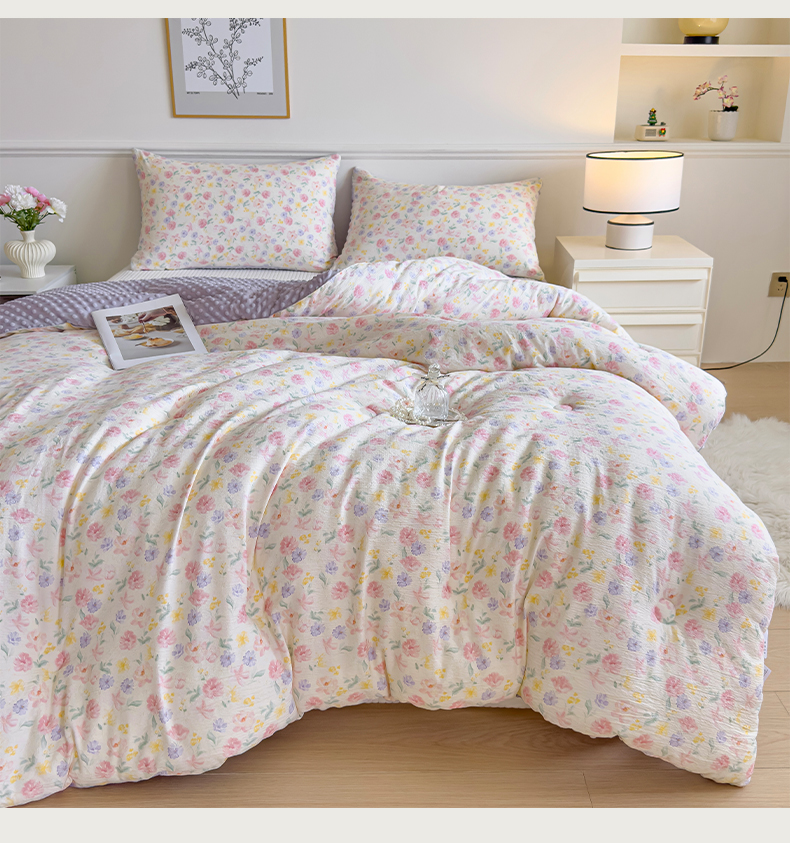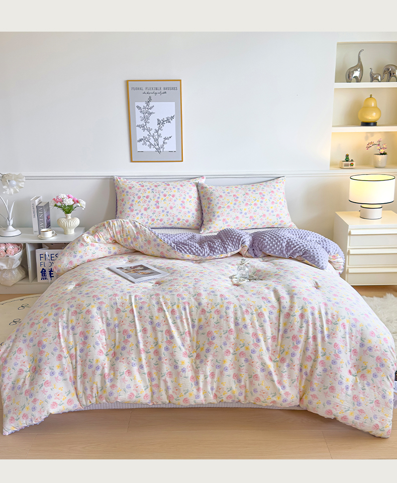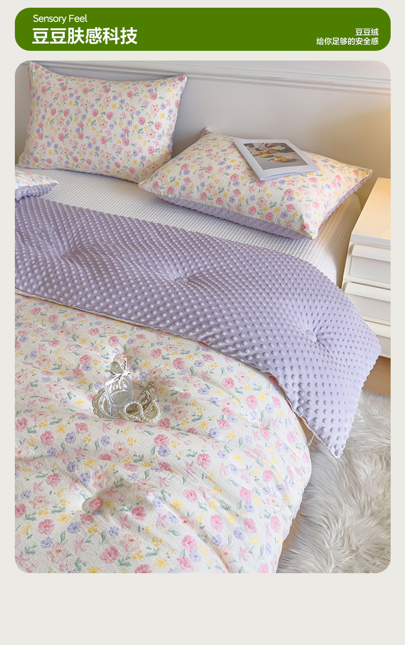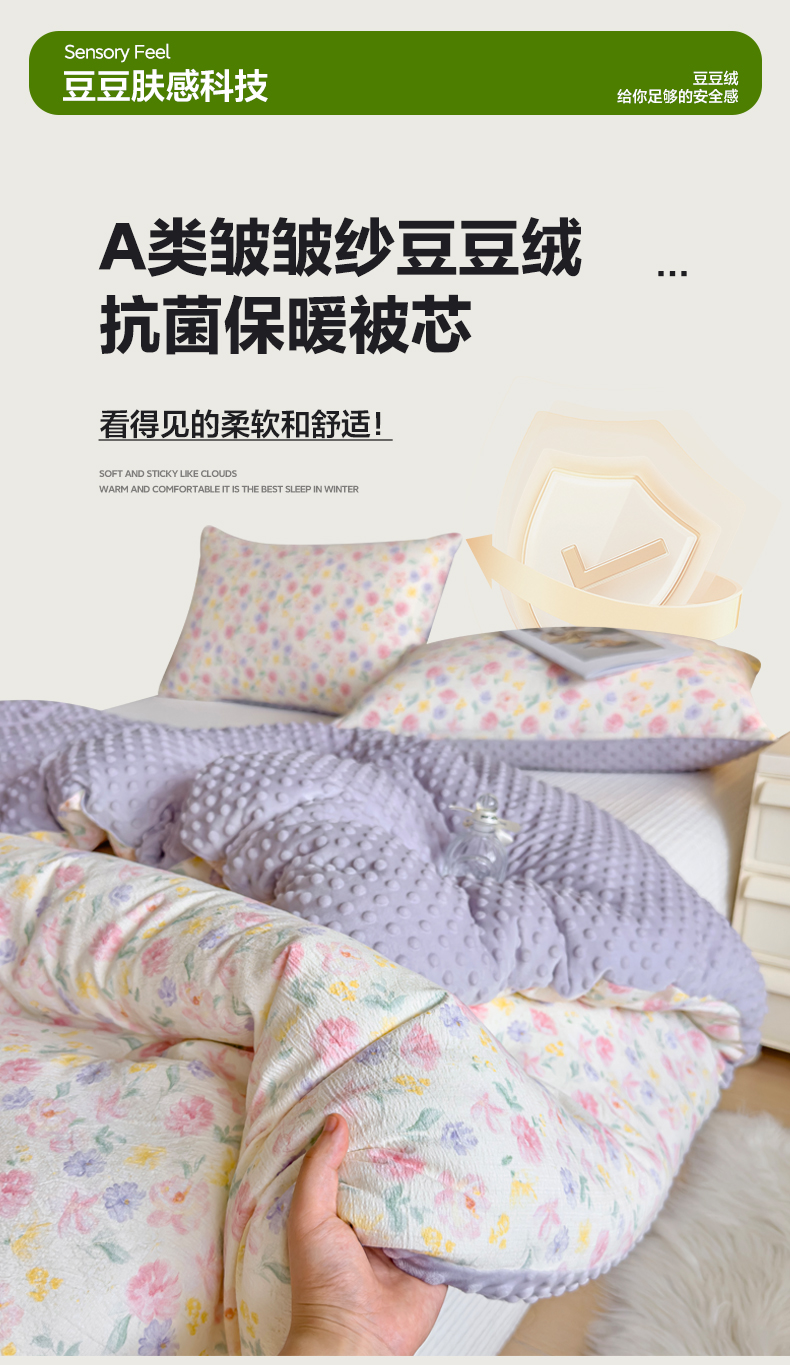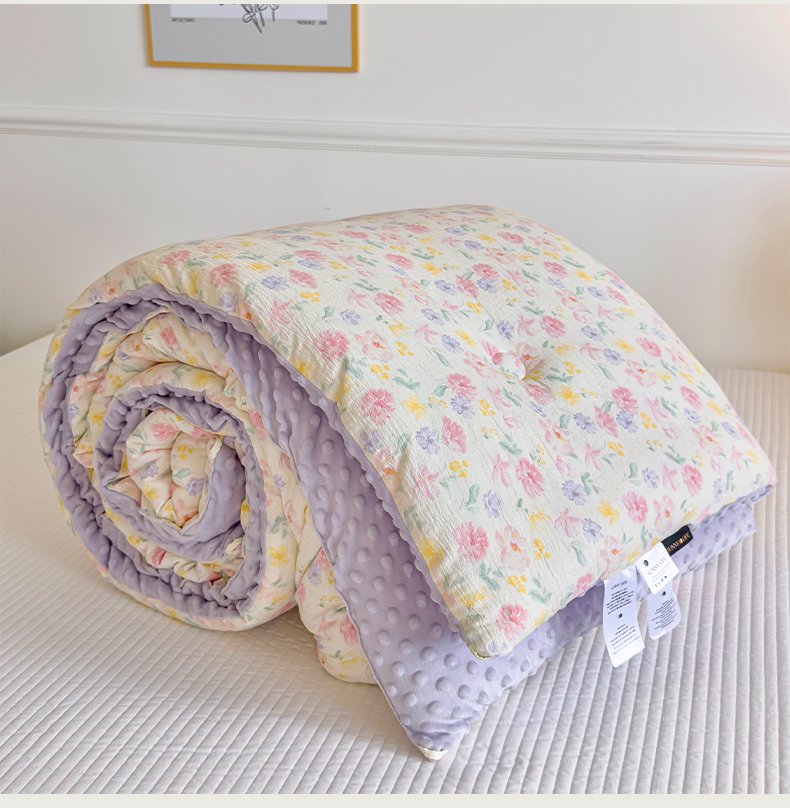 商品名称:玛德琳 2025新款A类皱皱纱豆豆绒抗菌保暖被子被芯 紫鸢