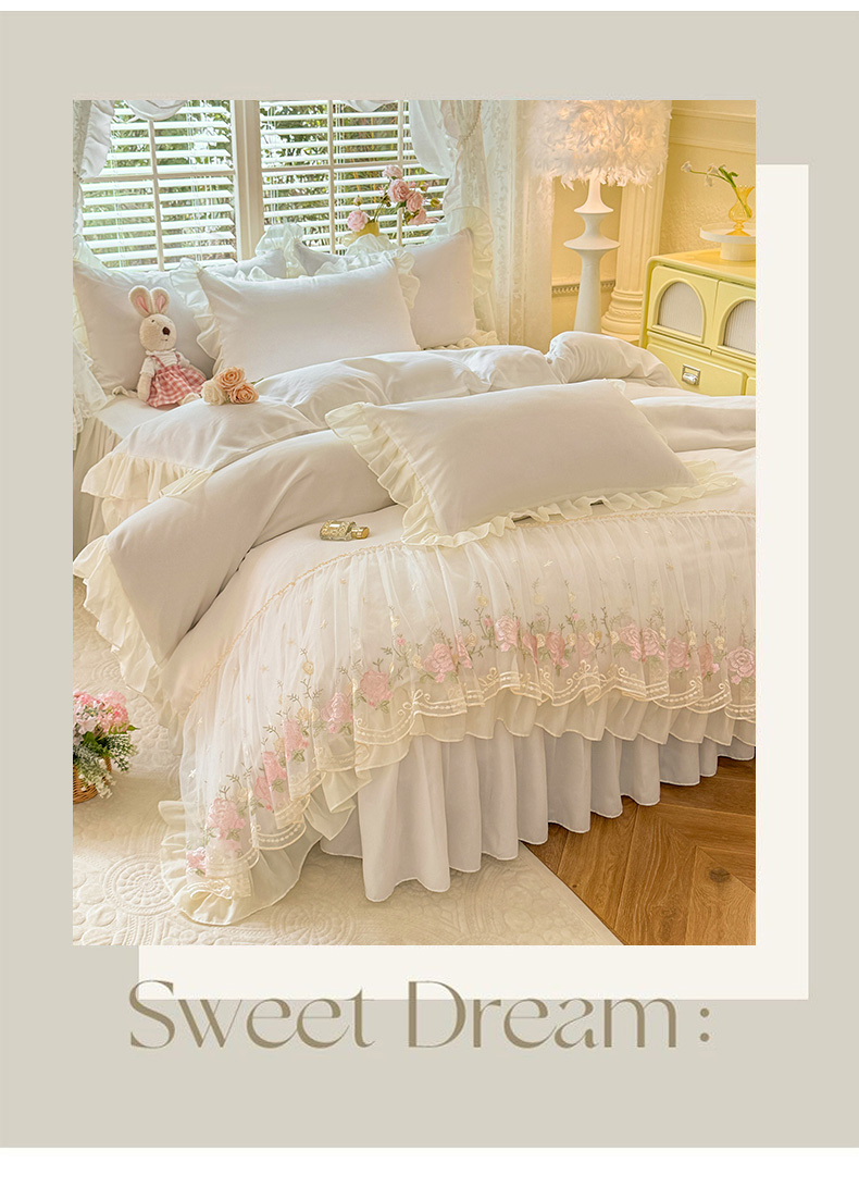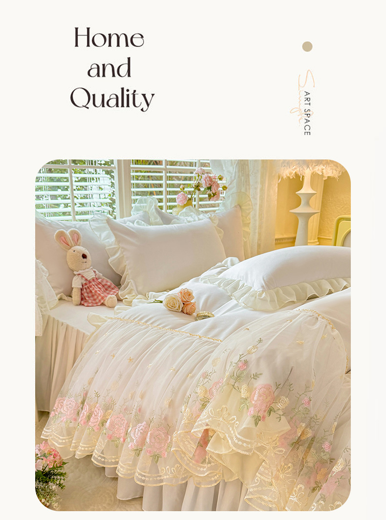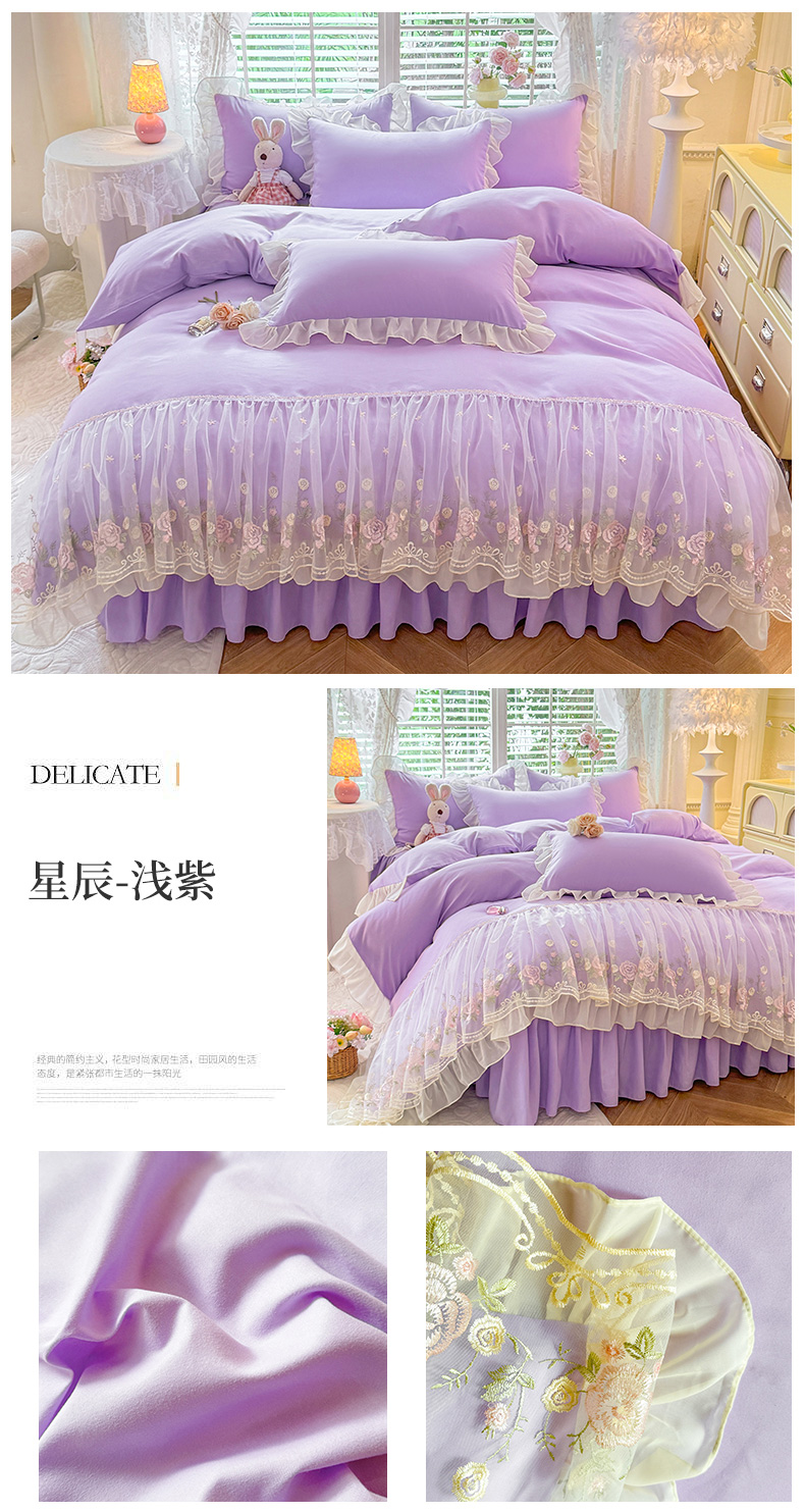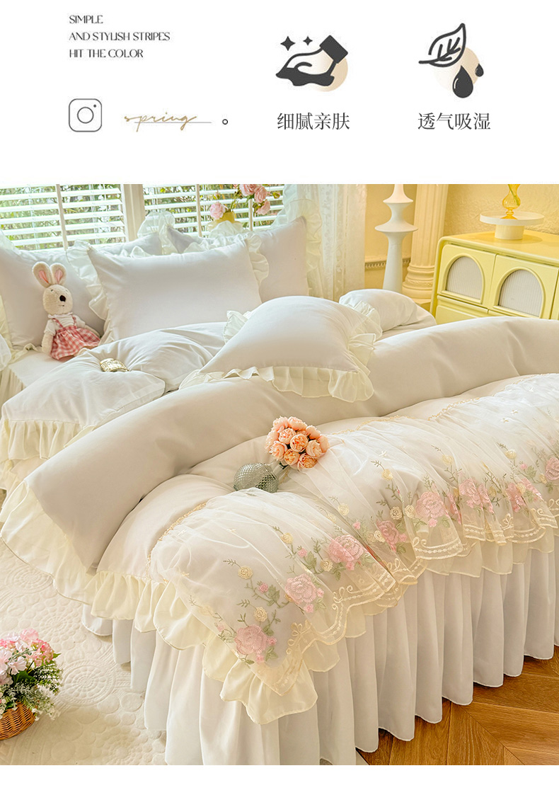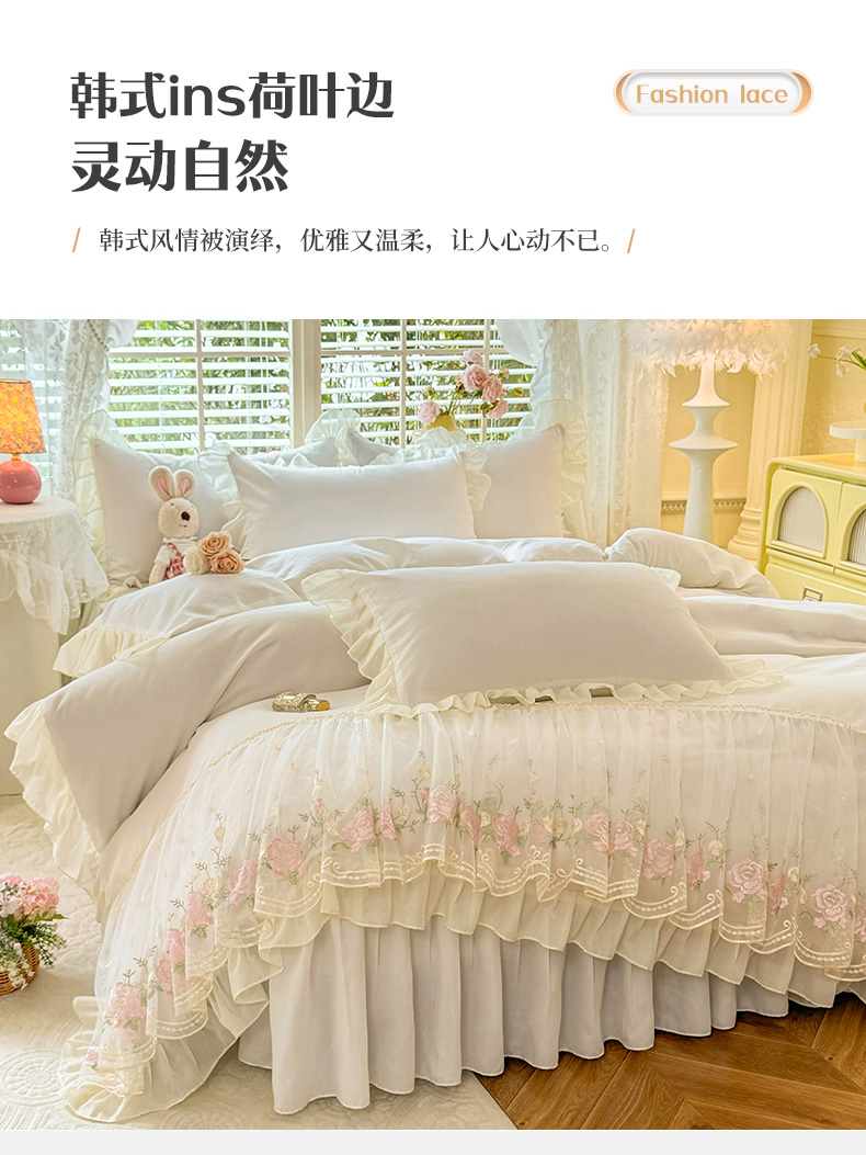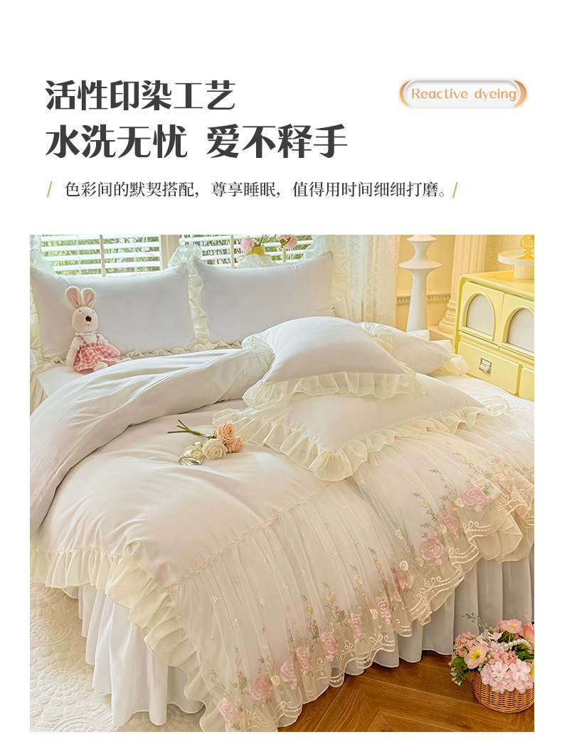 当前位置: 91家纺网 > 商品网购 > 床品套件 > 四件套 > 其它四件套 > 后庭寝室 2025新款韩版蕾丝床裙款四件套-星辰系列 星辰-米色