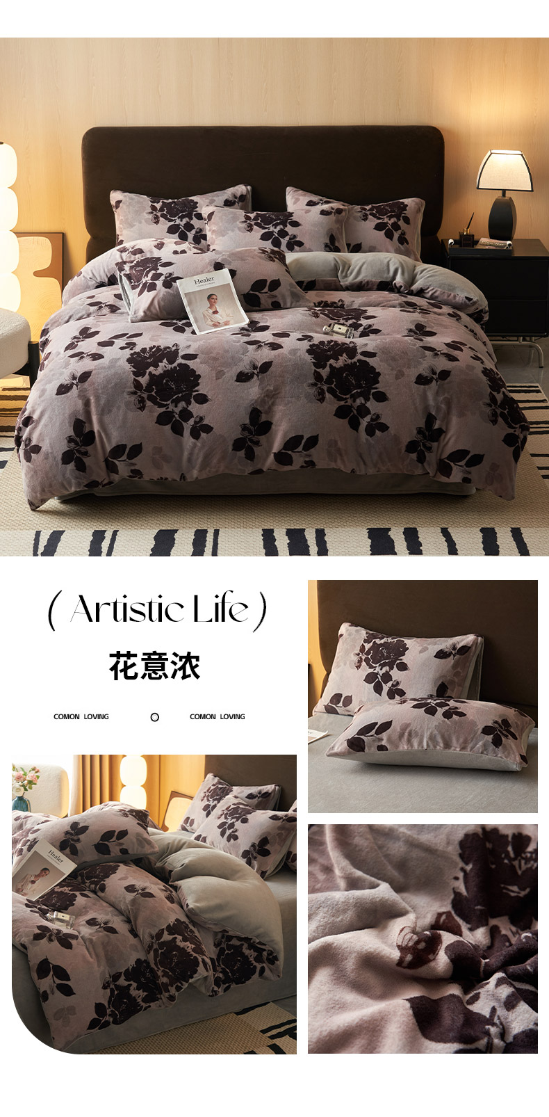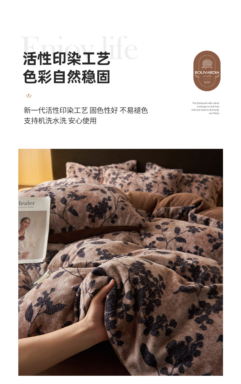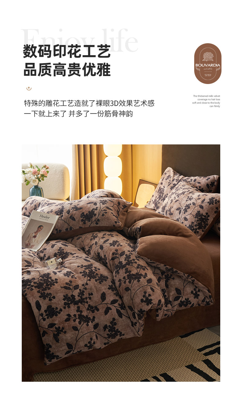 商品名称:吾诺家居 2025新款美拉德数码绒暖秋系列四件套 幽香花语