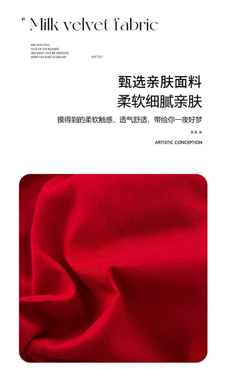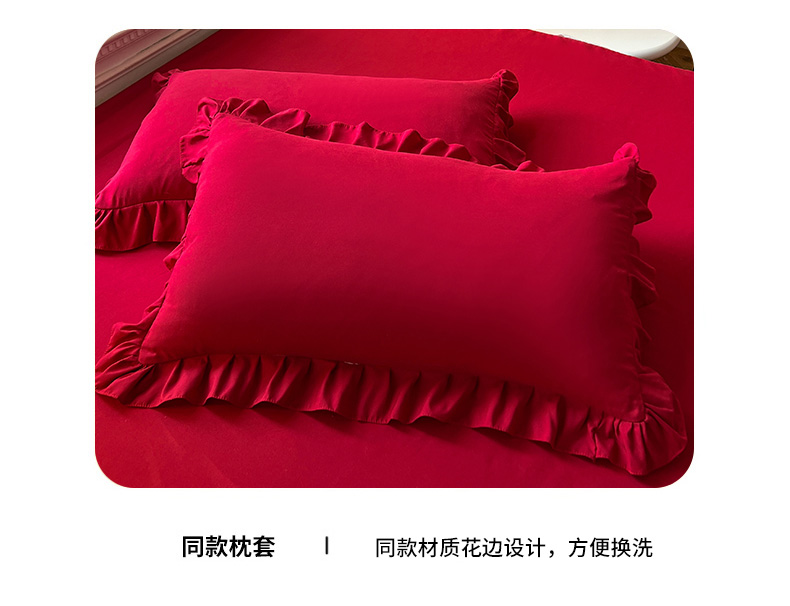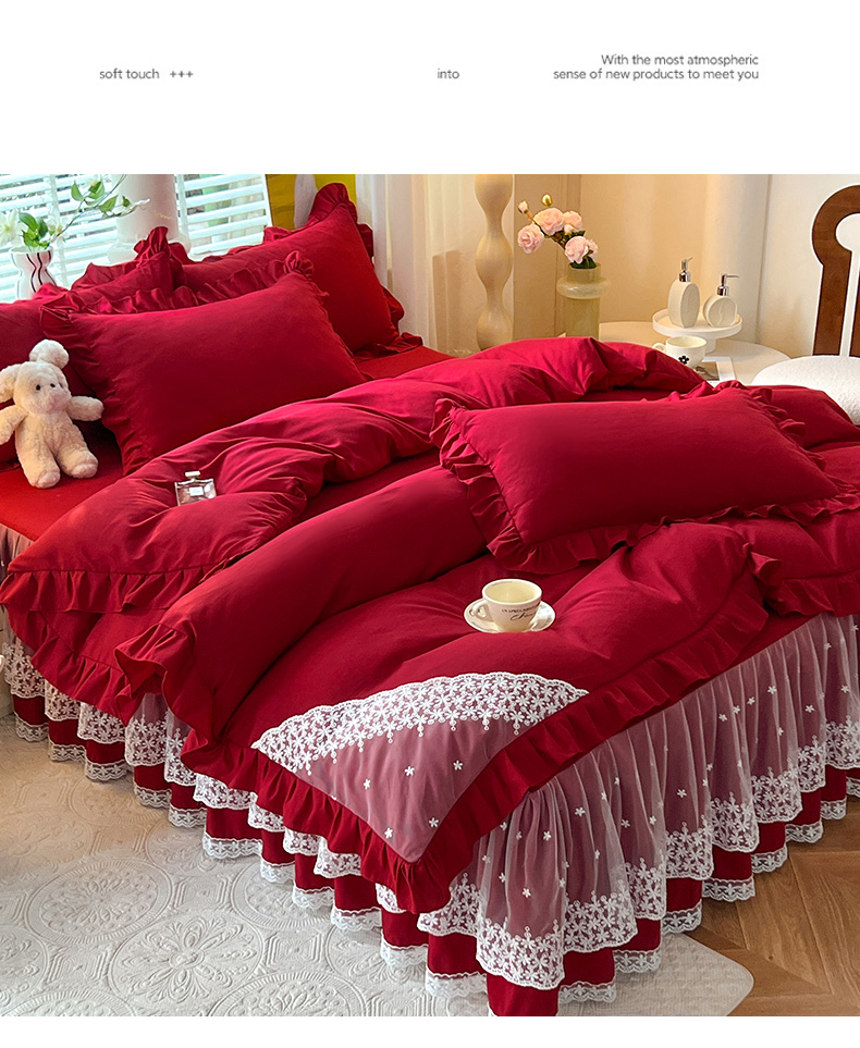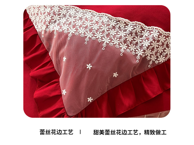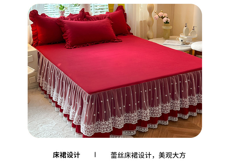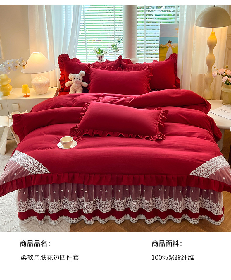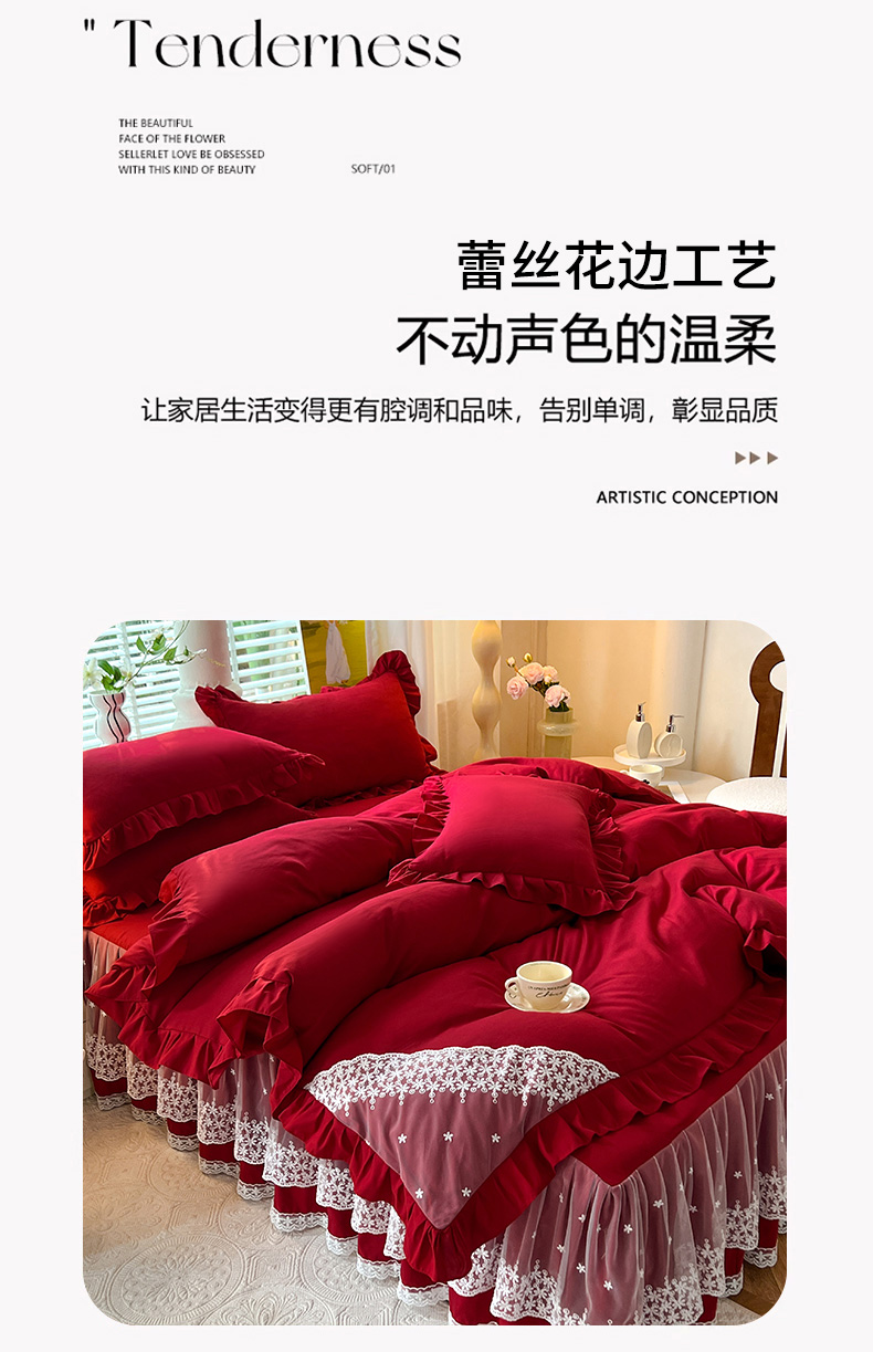 商品名称:后庭寝室 2025新款柔软亲肤花边蕾丝床裙四件套-花颜系列 花颜-酒红