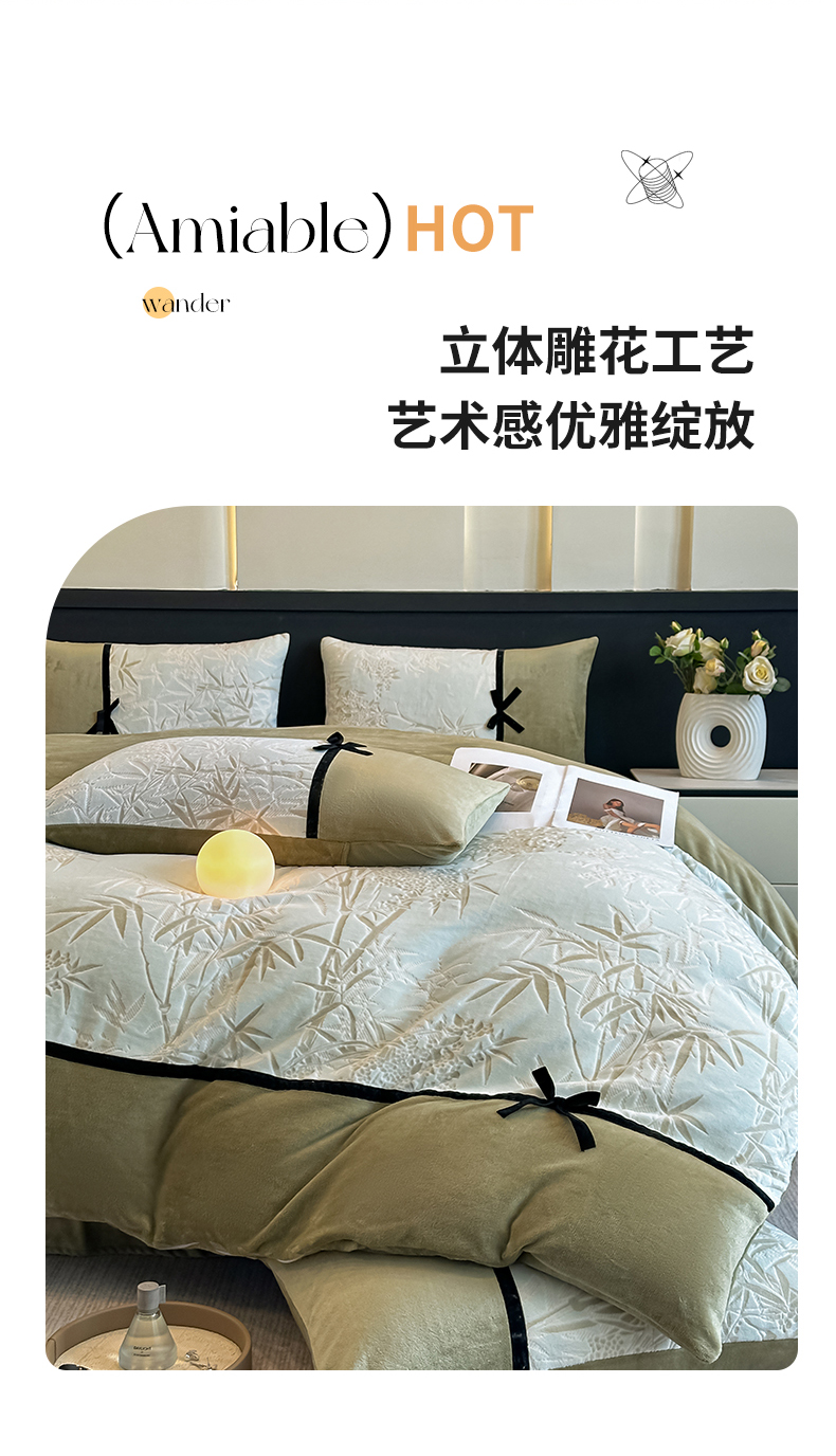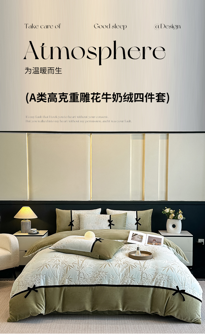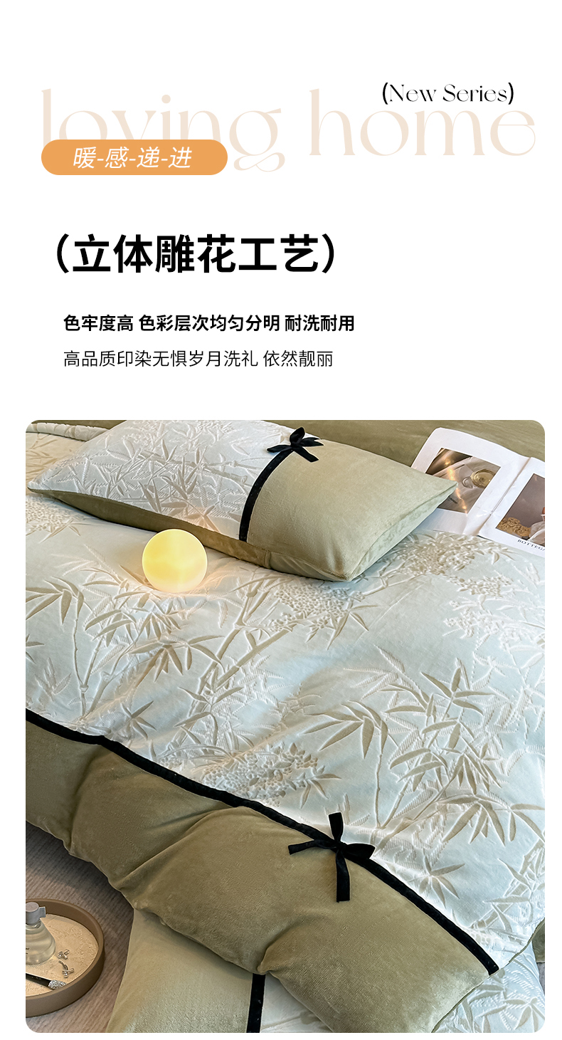 当前位置: 91家纺网 > 商品网购 > 床品套件 > 四件套 > 牛奶绒四件套 > 凯美家居 2025新款A类雕花牛奶绒四件套-美拉德系列 雅致