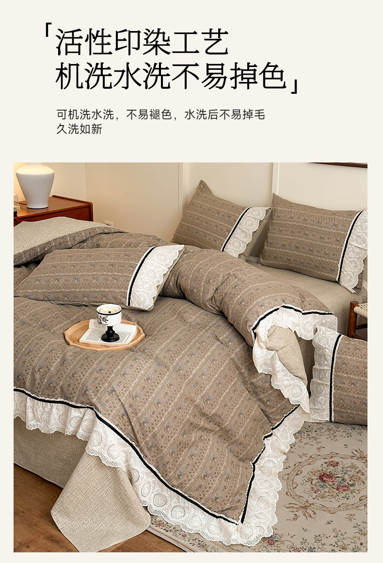 当前位置: 91家纺网 > 商品网购 > 床品套件 > 四件套 > 化纤普通四件套 > 芯贝儿 2025秋冬新款加厚全m花边m麻复古风亚麻皱皱双层纱水洗m四件套 半亩花田