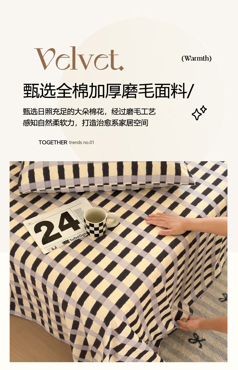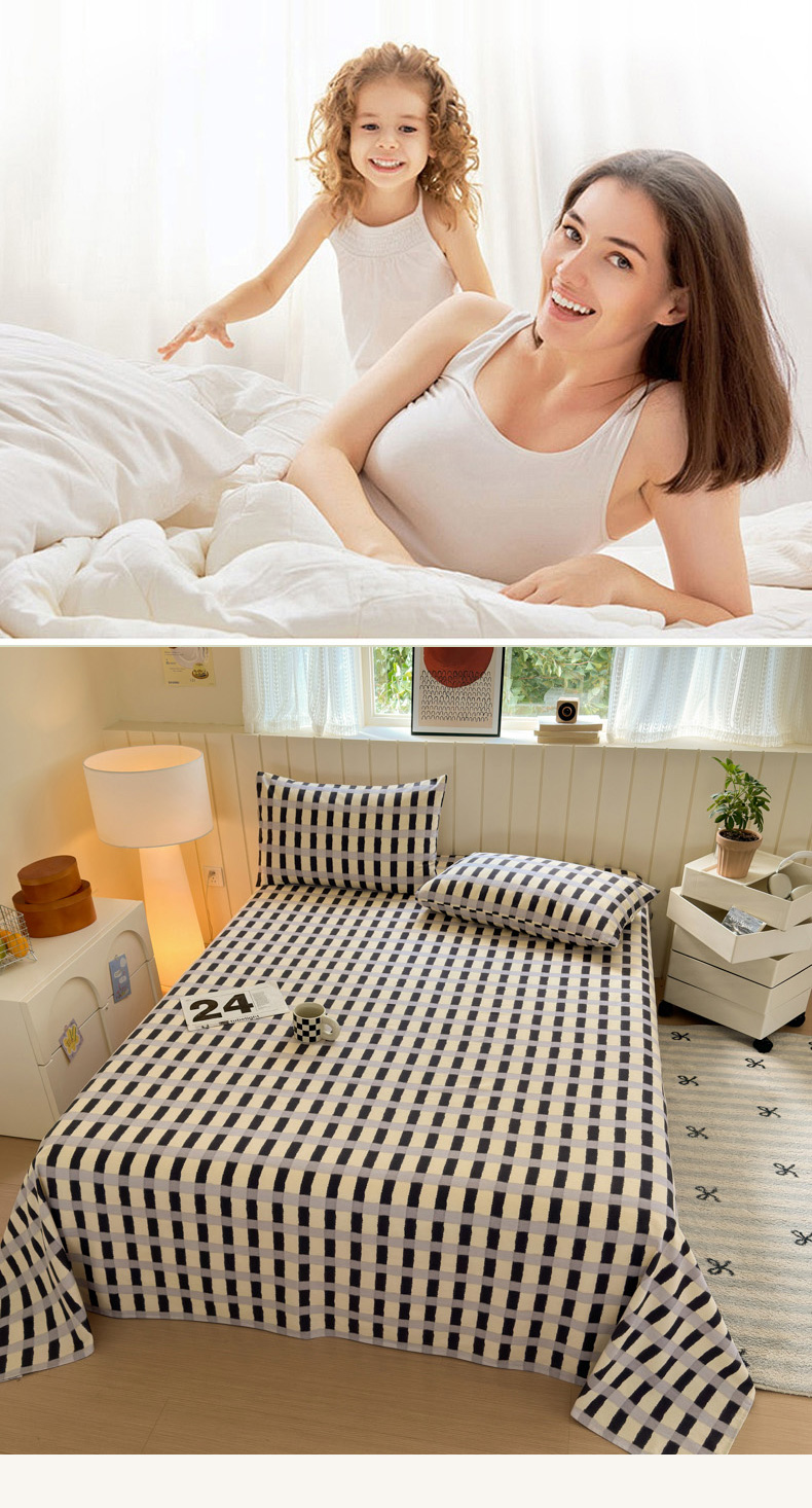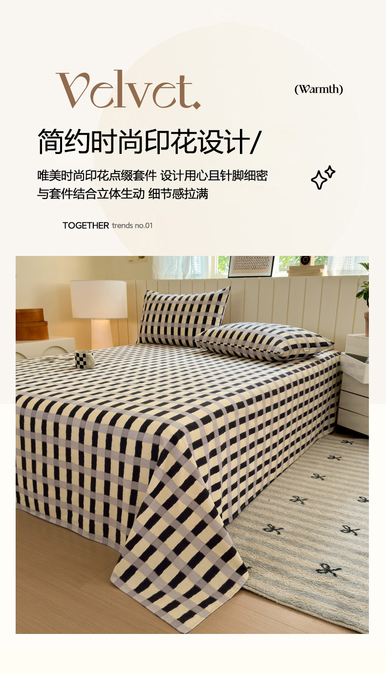 如意朵 2025新款时尚印花全棉加厚磨毛床单 艾格-蓝灰
