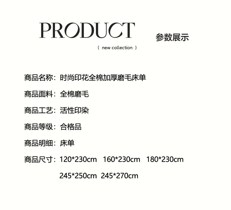 商品名称:如意朵 2025新款时尚印花全棉加厚磨毛床单 艾格-蓝灰