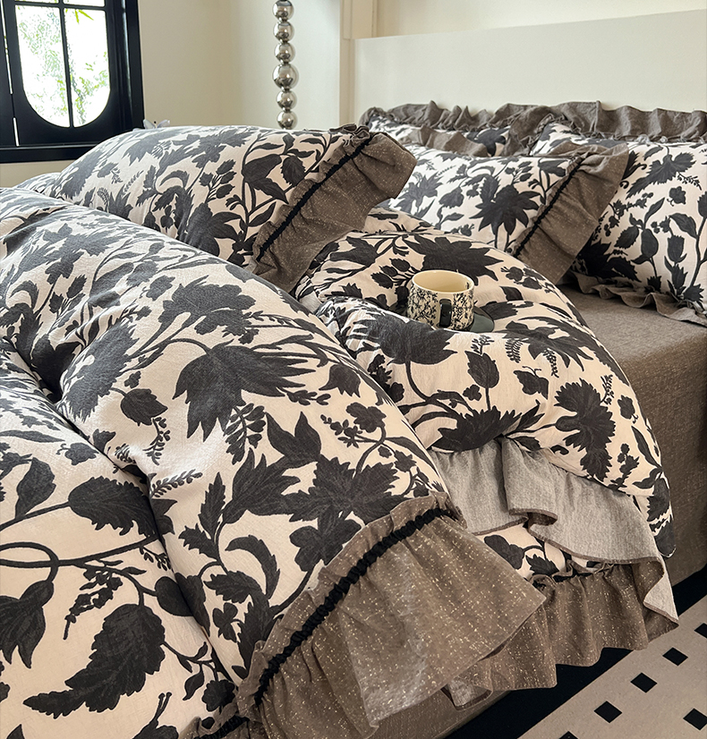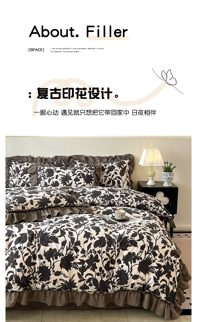 (总)喜颜 2025新款云感提花皱皱棉爆款花边四件套-赫本风,繁花,蝴蝶黑,花丛小熊,花束,棉棉兔,陌上花开,炫彩蝴蝶