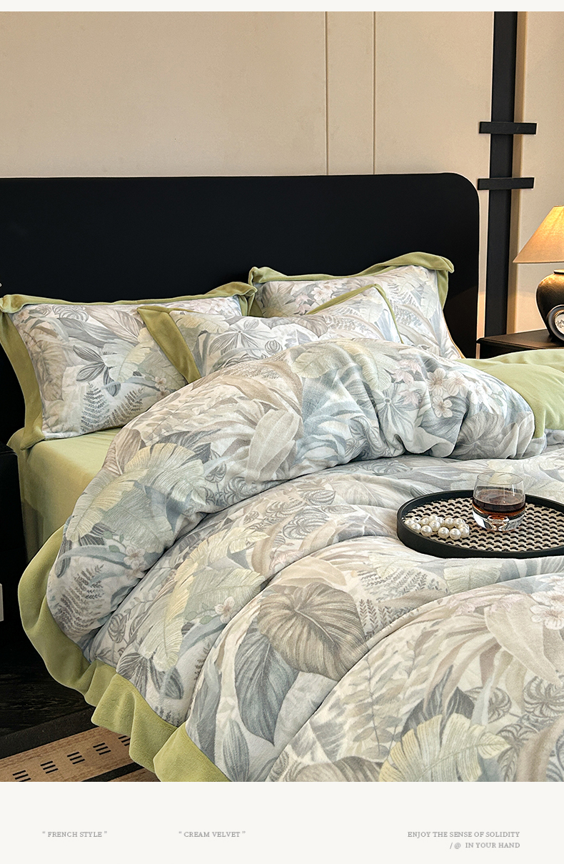 当前位置: 91家纺网 > 商品网购 > 床品套件 > 四件套 > 牛奶绒四件套 > 笙意家纺 2025新款加厚牛奶绒法式数码印花宽边四件套 倾墨