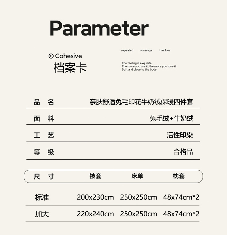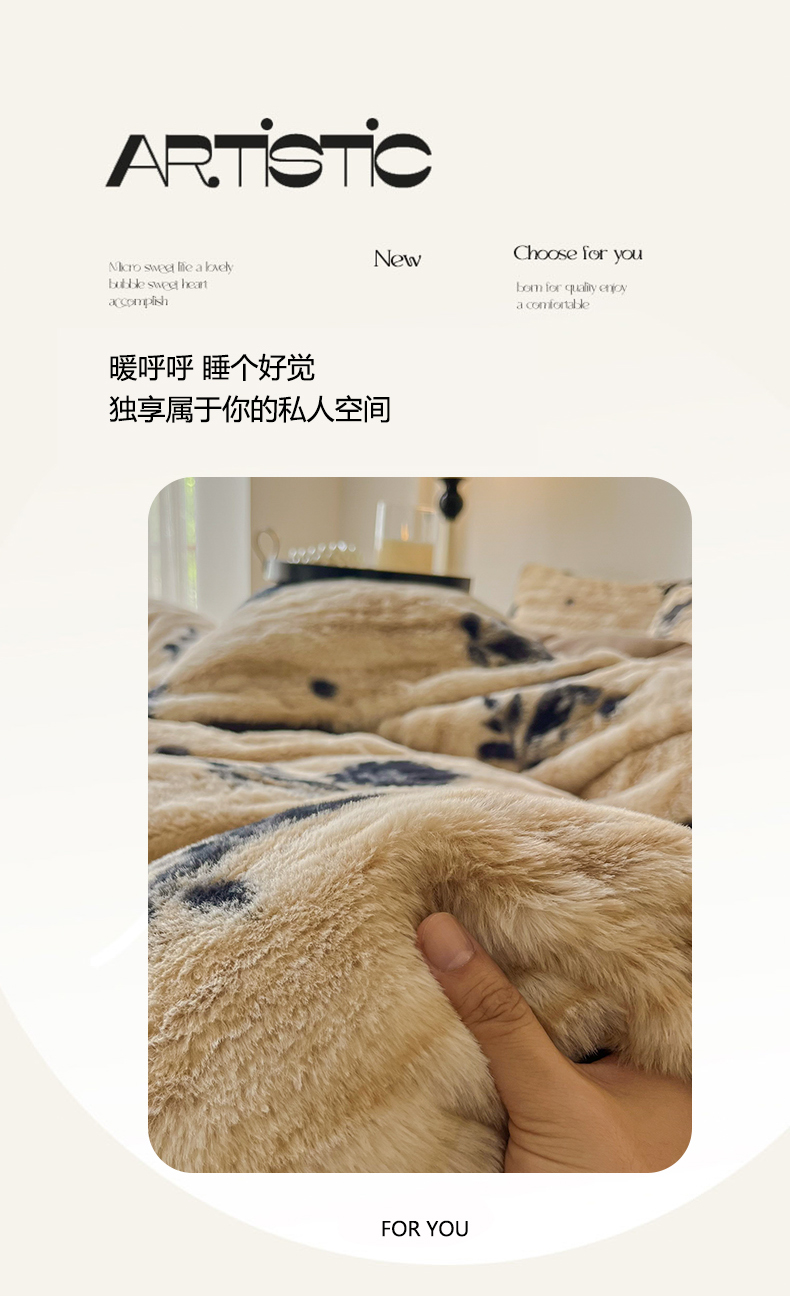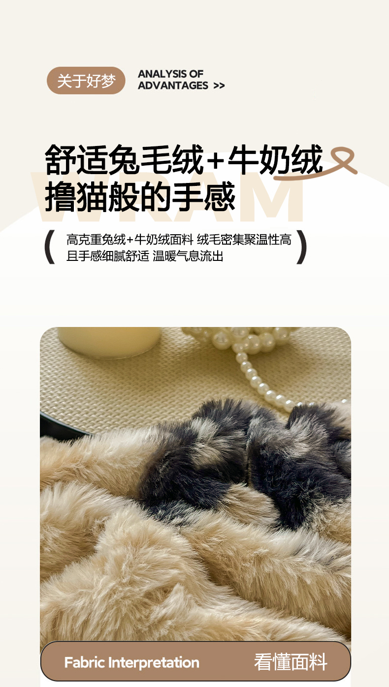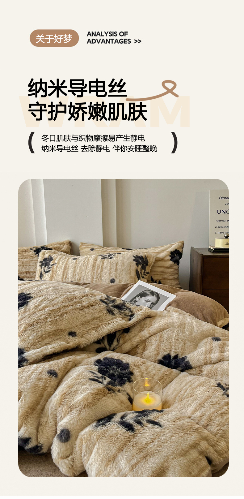 商品名称:梦纤绒 2025新款亲肤舒适兔毛印花牛奶绒保暖四件套一美拉德系 米底黑花