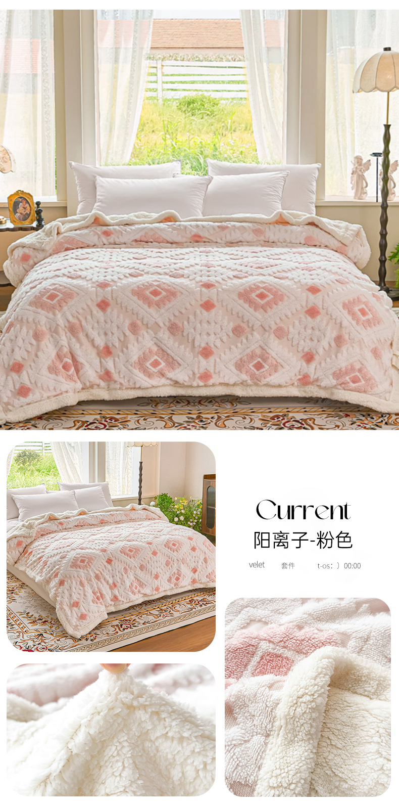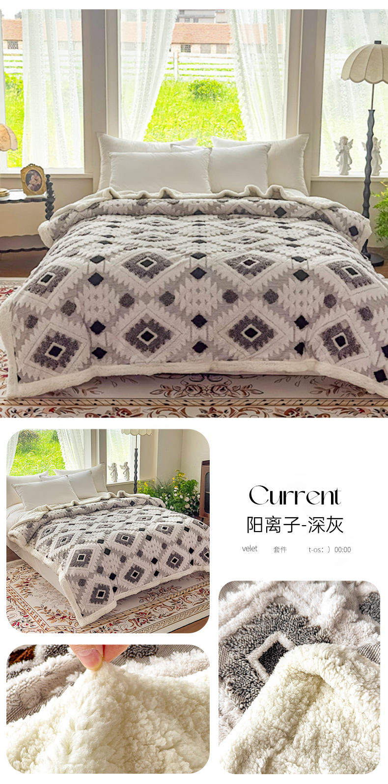 (总)璐维斯 2025新款加厚镂空阳离子双层羊羔绒毛毯休闲盖毯—跨境外贸专供,阳离子-中灰,阳离子-粉色,阳离子-驼色,阳离子-深灰,阳离子-浅灰,阳离子-玫红,阳离子-嫩叶绿,阳离子-薄荷蓝