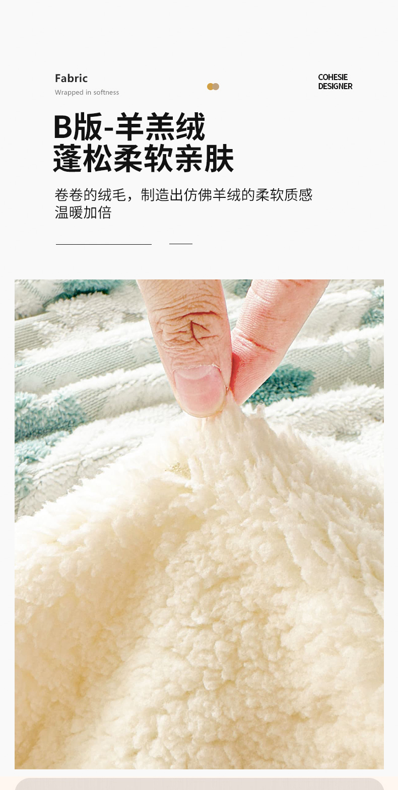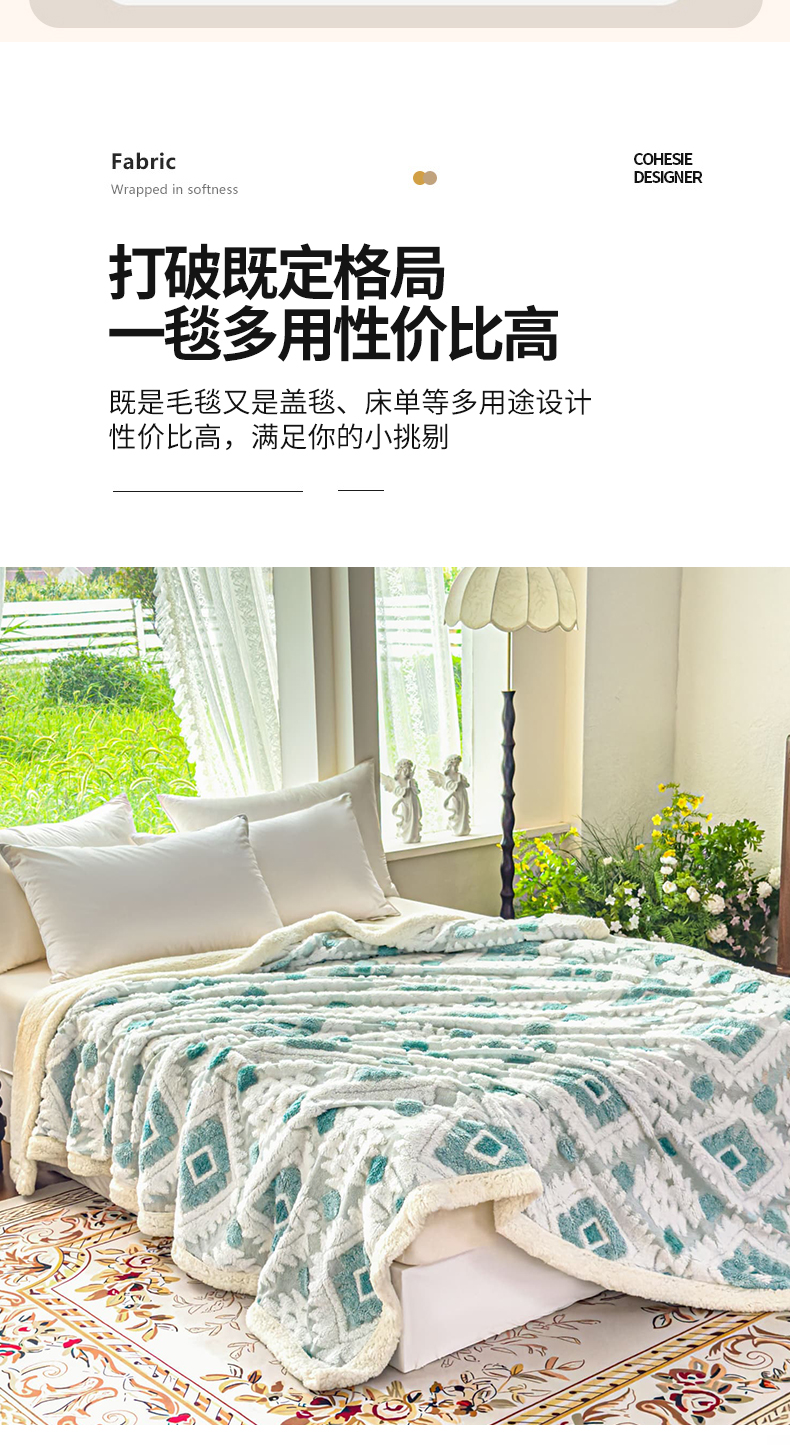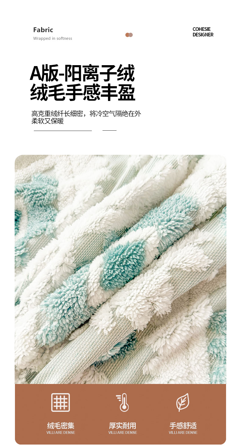 商品名称:璐维斯 2025新款加厚镂空阳离子双层羊羔绒毛毯休闲盖毯—跨境外贸专供 阳离子-嫩叶绿