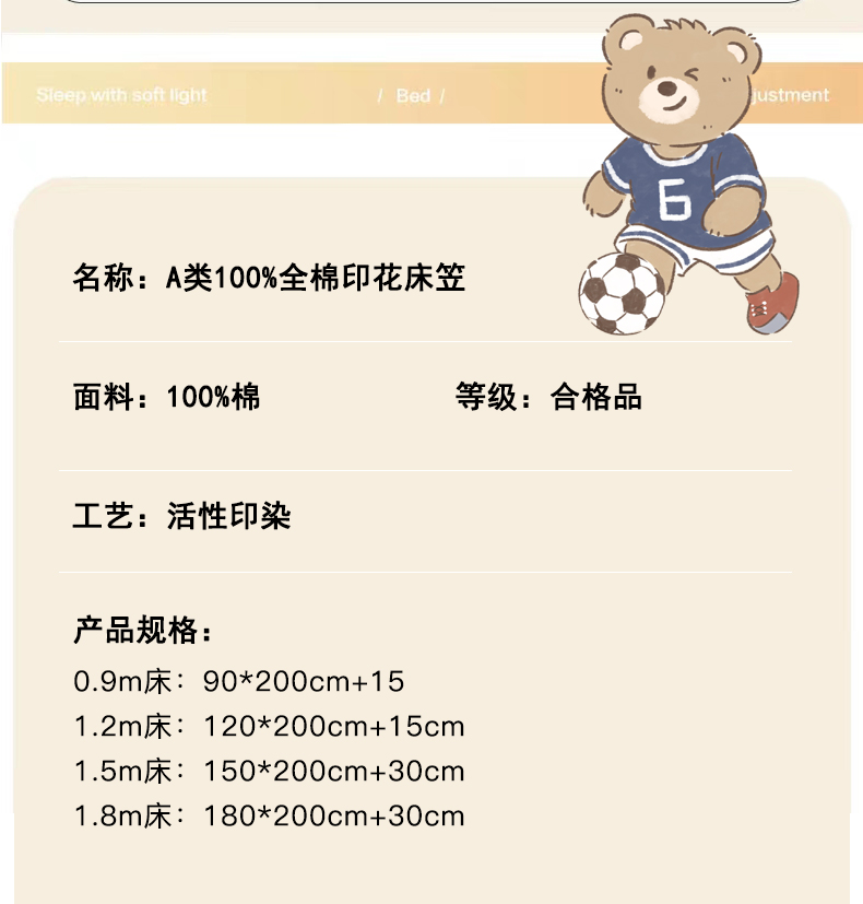 商品名称:金鑫汇家纺 2025新款A类全棉纯棉印花大床图单床笠 床笠单件 友谊足球