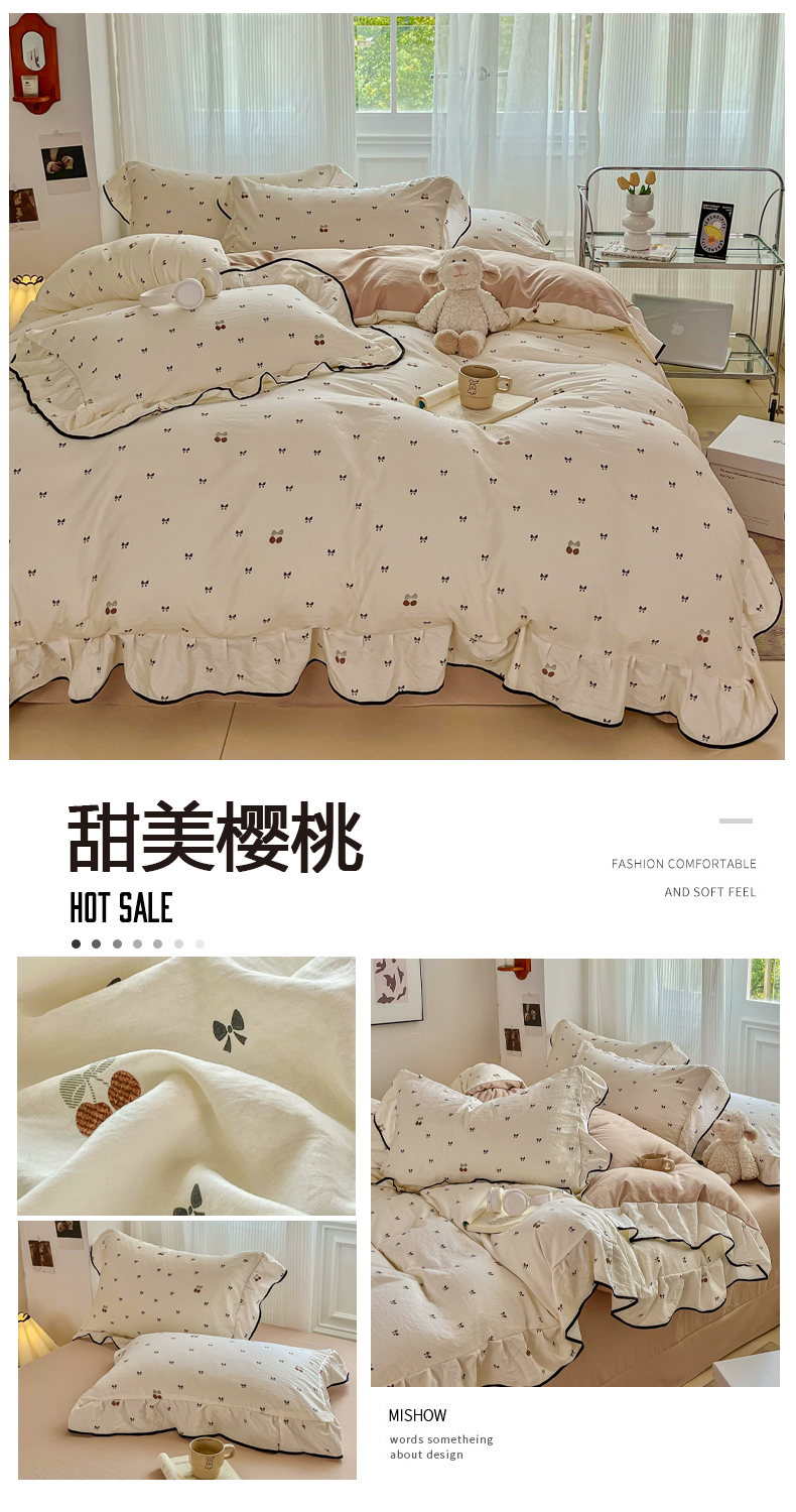 (总)斯卡诺家纺 2026新款韩版花边古法水洗仿棉床盖四件套花边床单四件套,爱心樱桃-韩版花边,红粉佳人-韩版花边,花千朵-韩版花边,灰樱桃-韩版花边,凯蒂猫-韩版花边,满园春色-韩版花边,漫野-韩版花边,觅时光-韩版花边,喵星人-韩版花边,慕兮-韩版花边,南枝-韩版花边,盛夏花开-韩版花边,兔小姐-韩版花边,小苍兰-韩版花边,小夜曲粉-韩版花边,小夜曲紫-韩版花边
