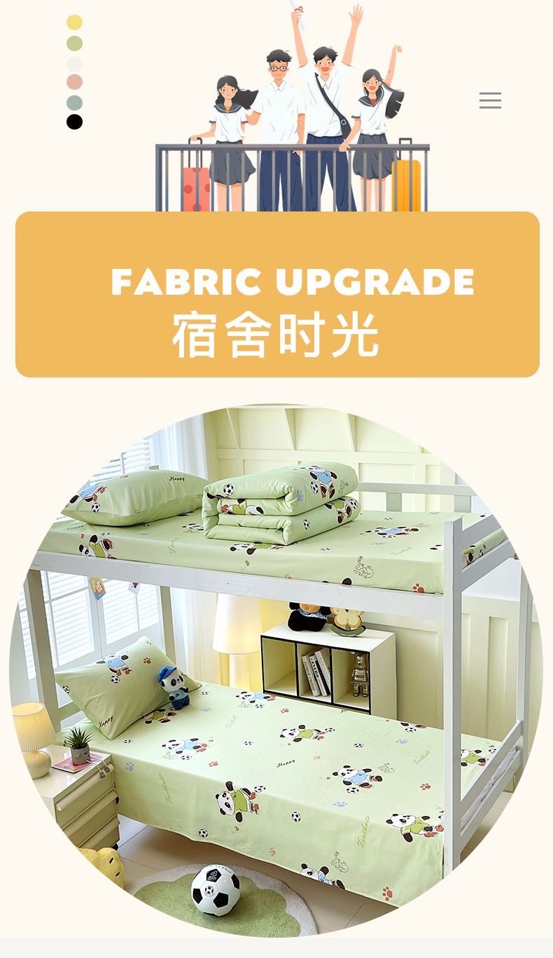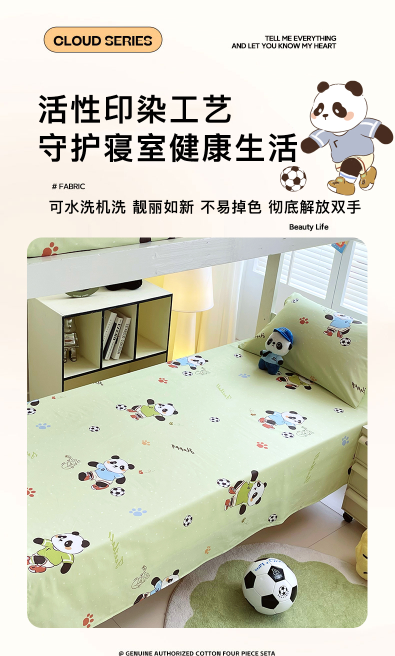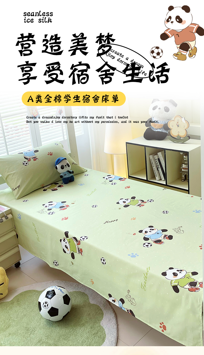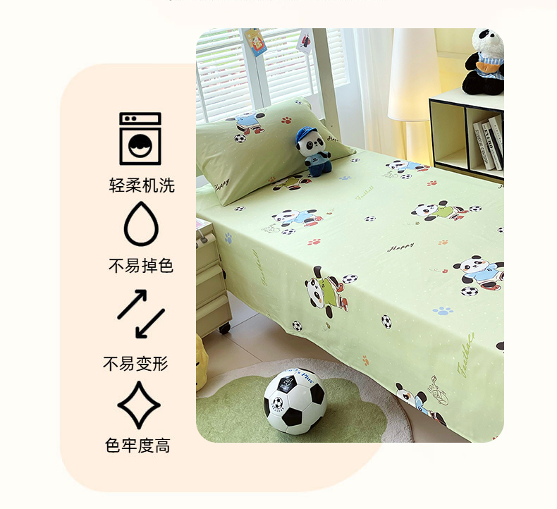 商品名称:金鑫汇家纺 2025新款A类全棉纯棉印花学生床单品床单 床单单件 足球争霸赛·绿