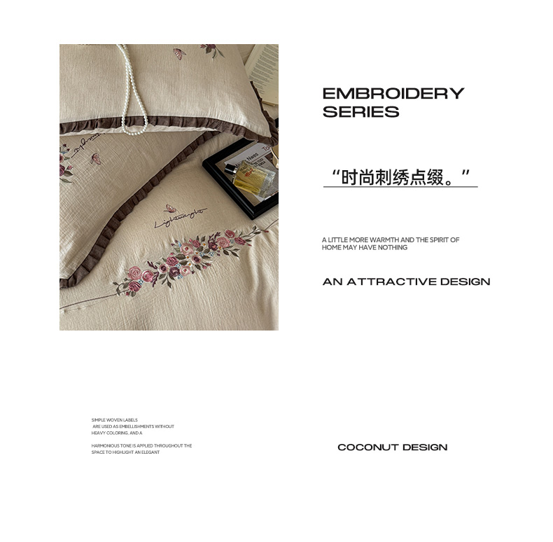 当前位置: 91家纺网 > 商品网购 > 床品套件 > 四件套 > 棉麻四件套 > (总)艾唯希家纺 2025新款全棉复古棉麻工艺四件套纯棉-晚风玫瑰系列