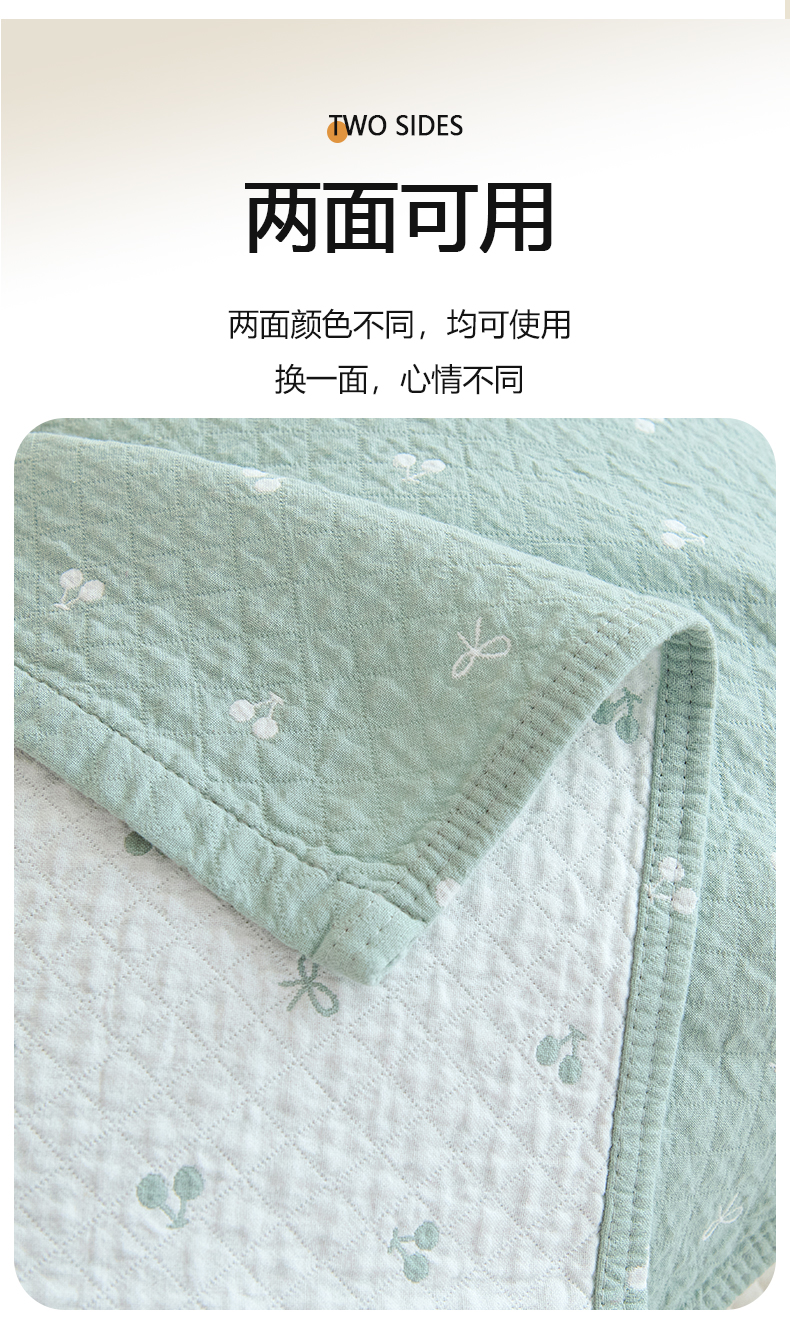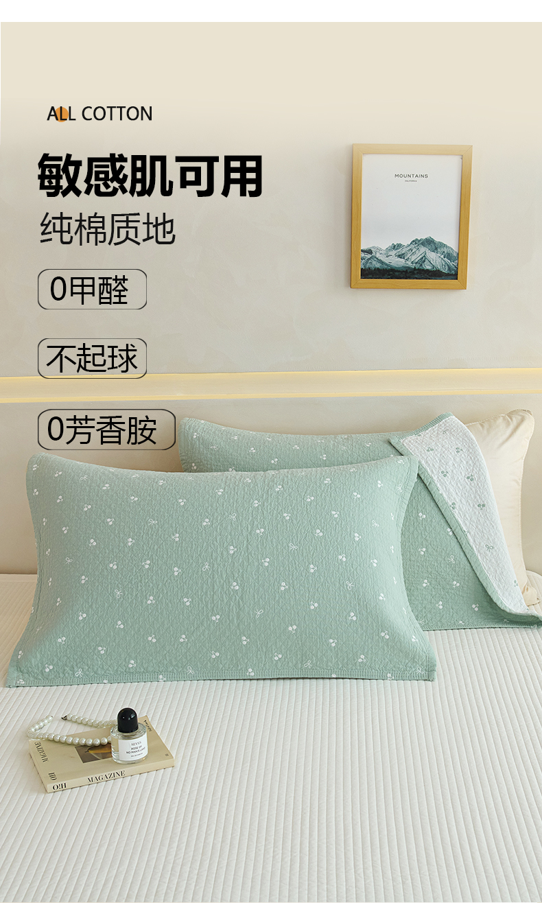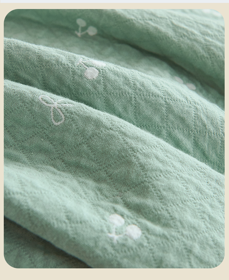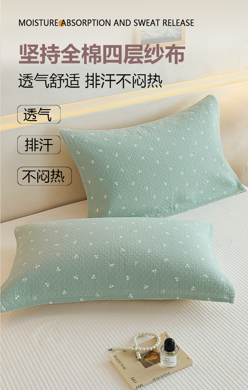 商品名称:棠薇家纺 2025新款 枕巾纯棉纱布水洗全棉纱布纯棉耐脏吸汗透气预缩水 樱桃朵朵绿