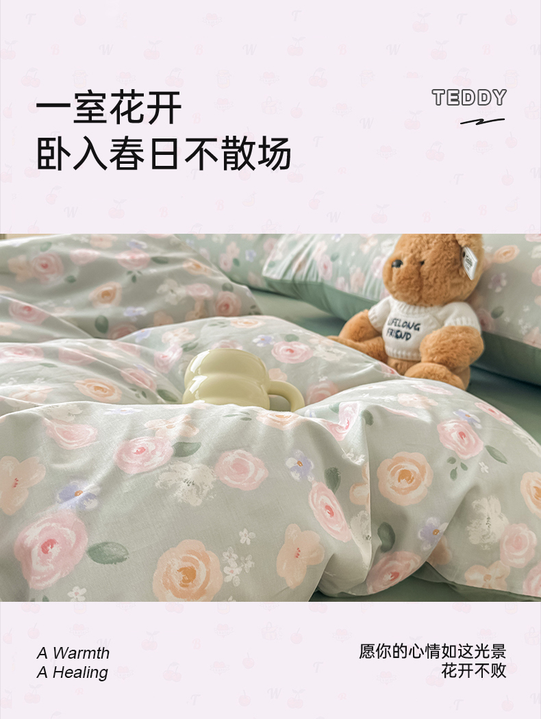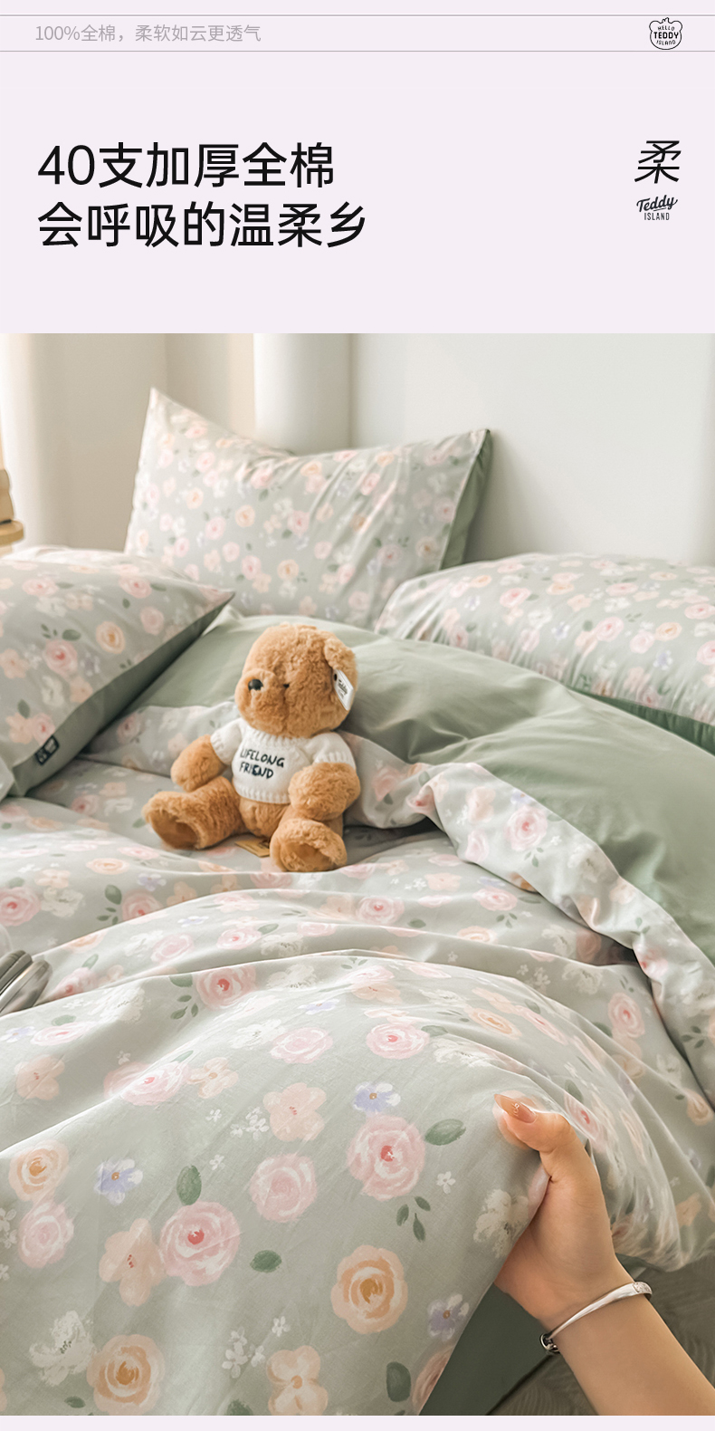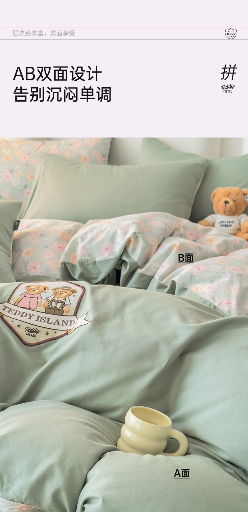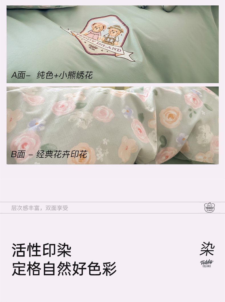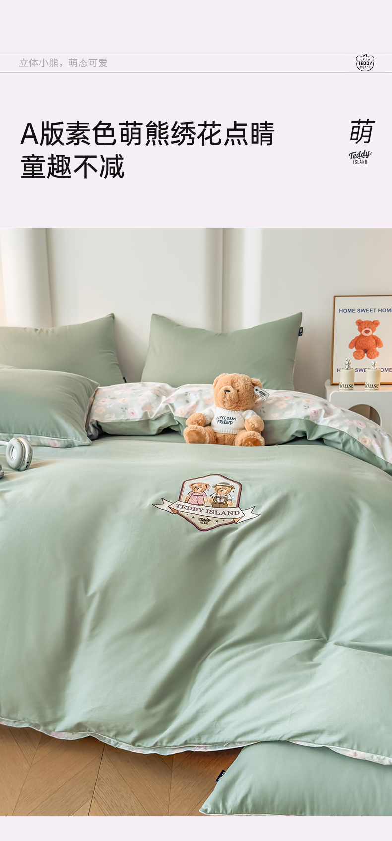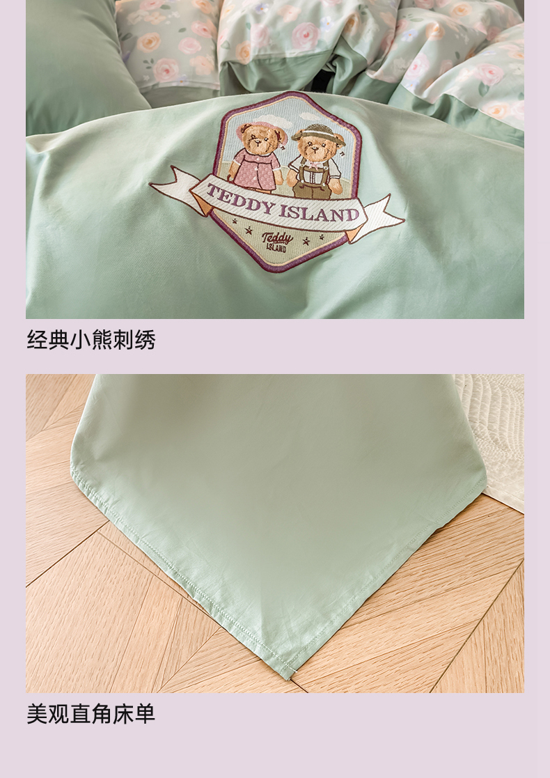 (总)泰迪爱兰Teddy ISLAND 2025新款40支全棉印花刺绣四件套,烟雨花间,印记时光,童年诗篇,挽夏-绿,迪莉娅,守护甜心,素然-米