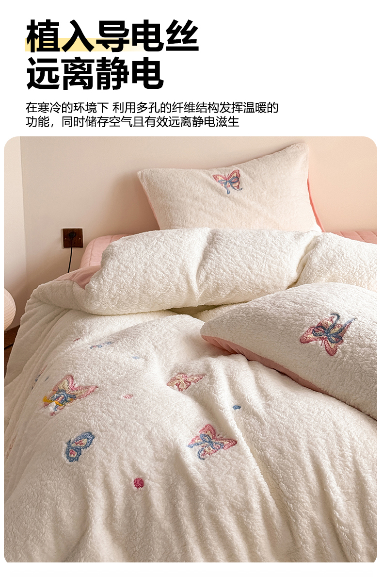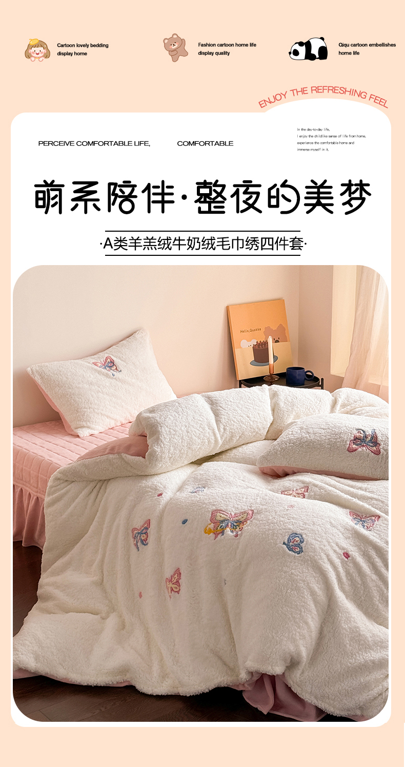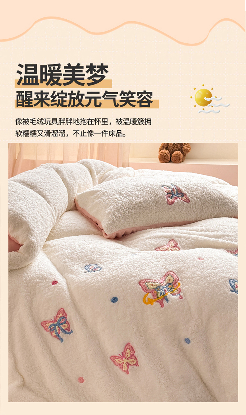当前位置: 91家纺网 > 商品网购 > 床品套件 > 四件套 > 牛奶绒四件套 > TT.one 塔塔家居 2025新款羊羔绒牛奶绒暖绵绵毛巾绣床单床裙床盖款四件套 云团睡睡蝶·白