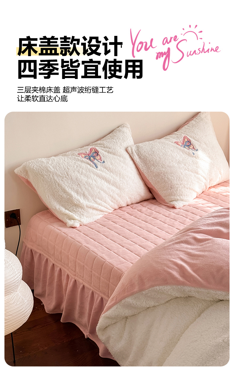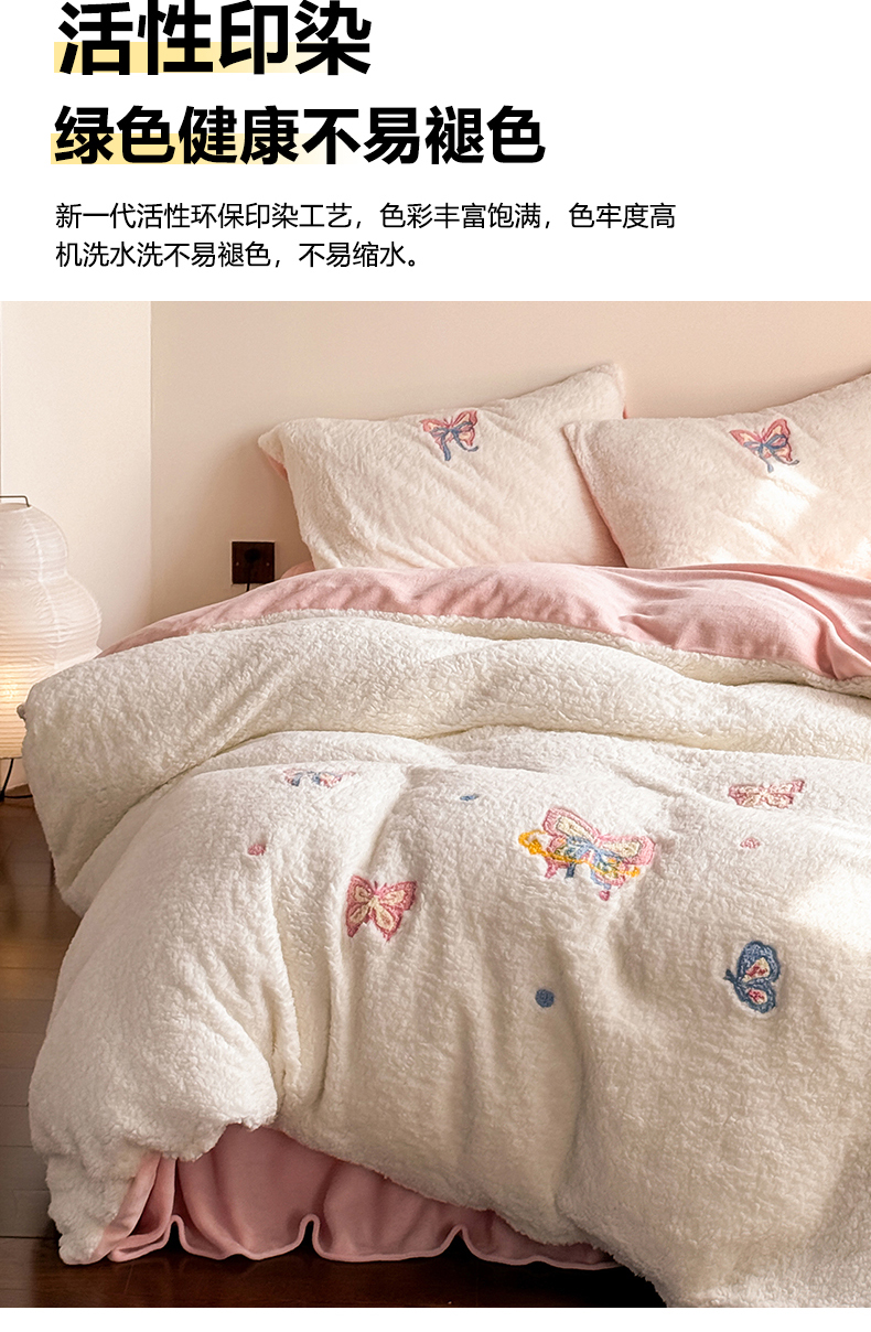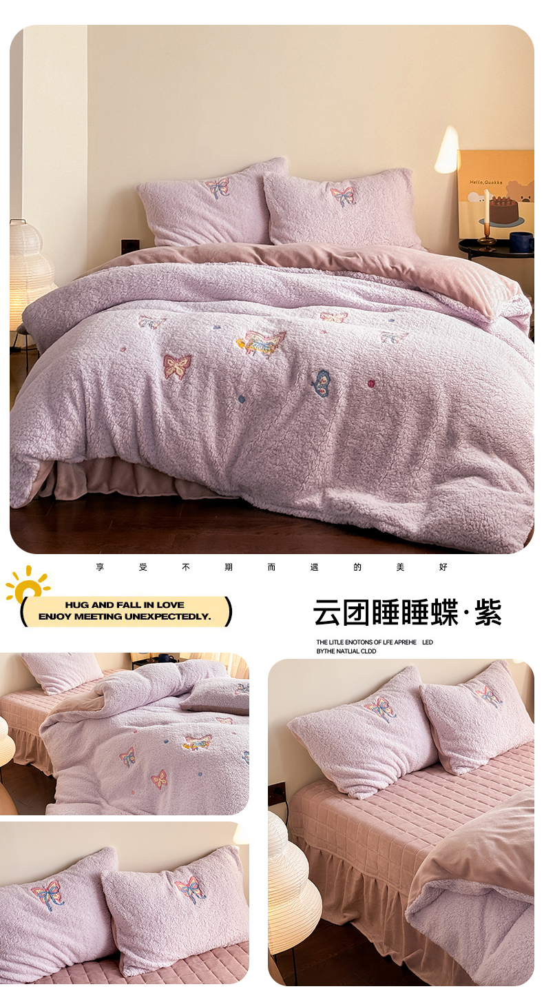 当前位置: 91家纺网 > 商品网购 > 床品套件 > 四件套 > 牛奶绒四件套 > TT.one 塔塔家居 2025新款羊羔绒牛奶绒暖绵绵毛巾绣床单床裙床盖款四件套 云团睡睡蝶·白