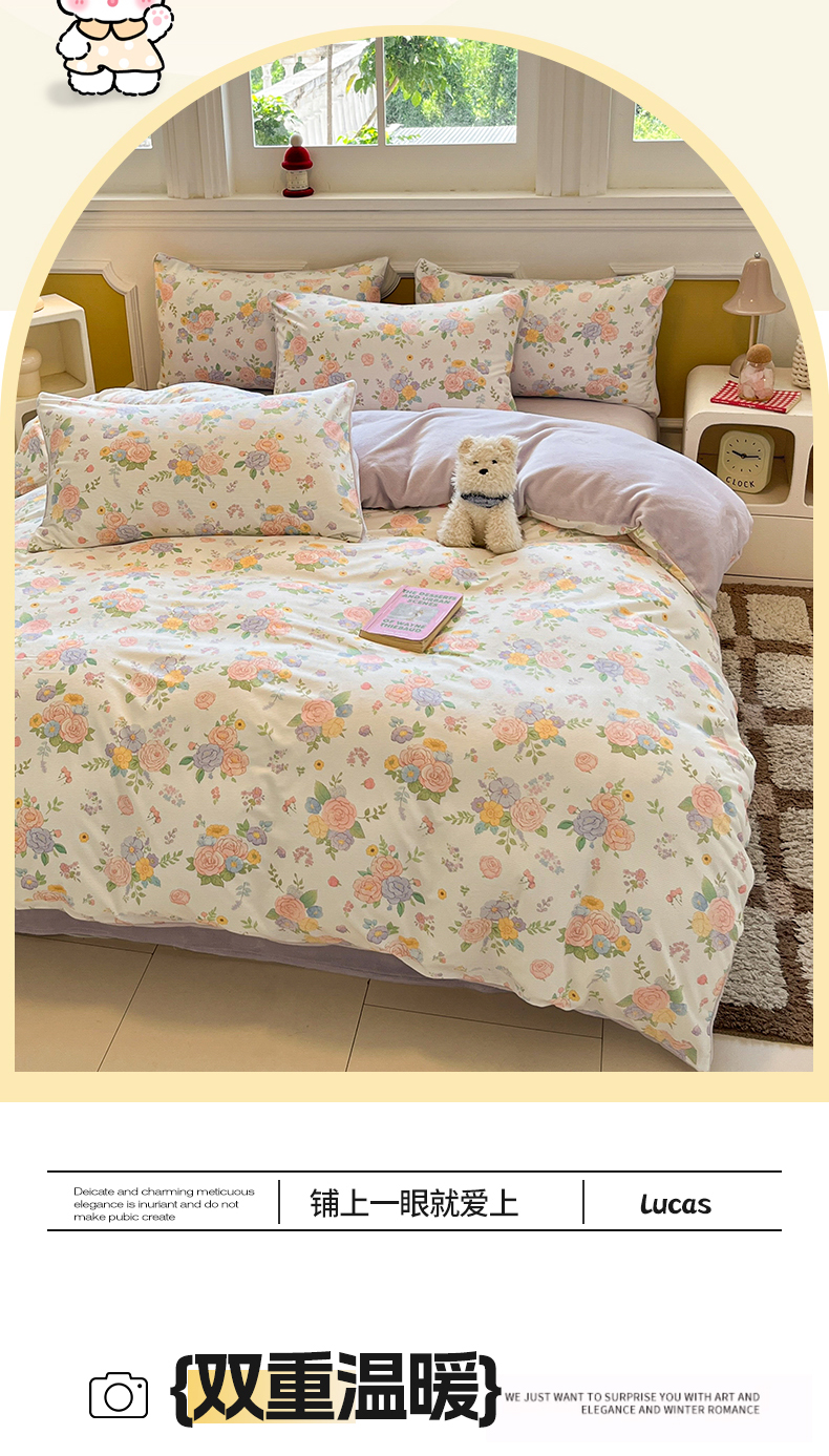 (总)羚羊语家纺 2025新款灯芯绒 温暖颂系列-印花牛奶绒四件套高克重简约卡通花卉提花加厚保暖床单床笠三件套(买家秀请联系客服!),温暖颂-宠物乐园,温暖颂-漫野春息,温暖颂-初绽,温暖颂-樱桃日记,温暖颂-花间兔,温暖颂-叶知秋,温暖颂-卡皮小布,温暖颂-小熊奇遇,温暖颂-兔儿啵啵