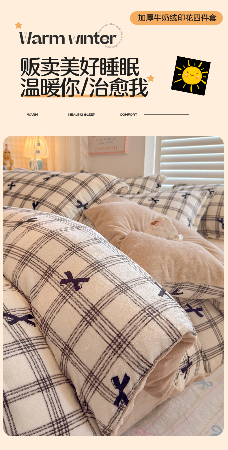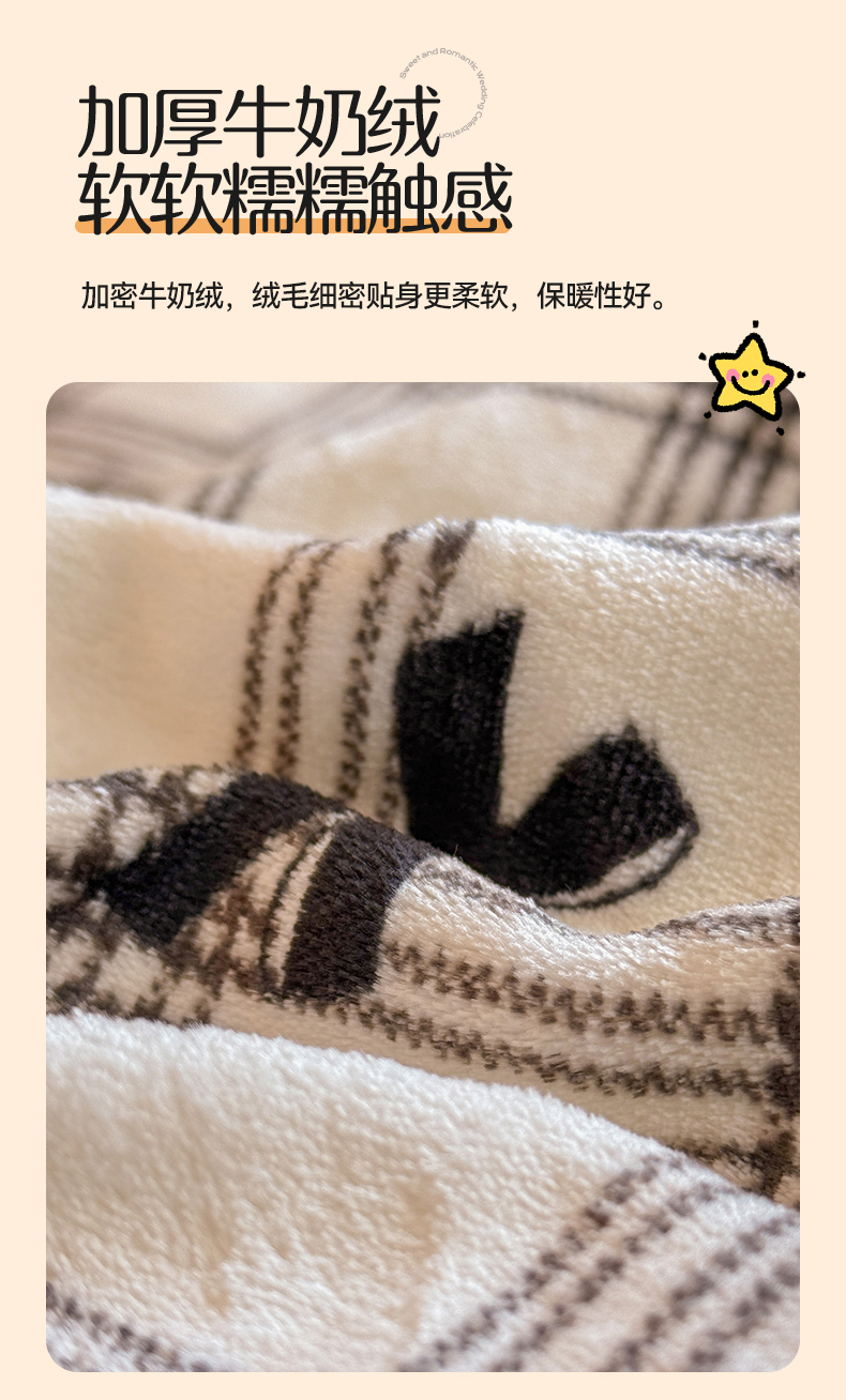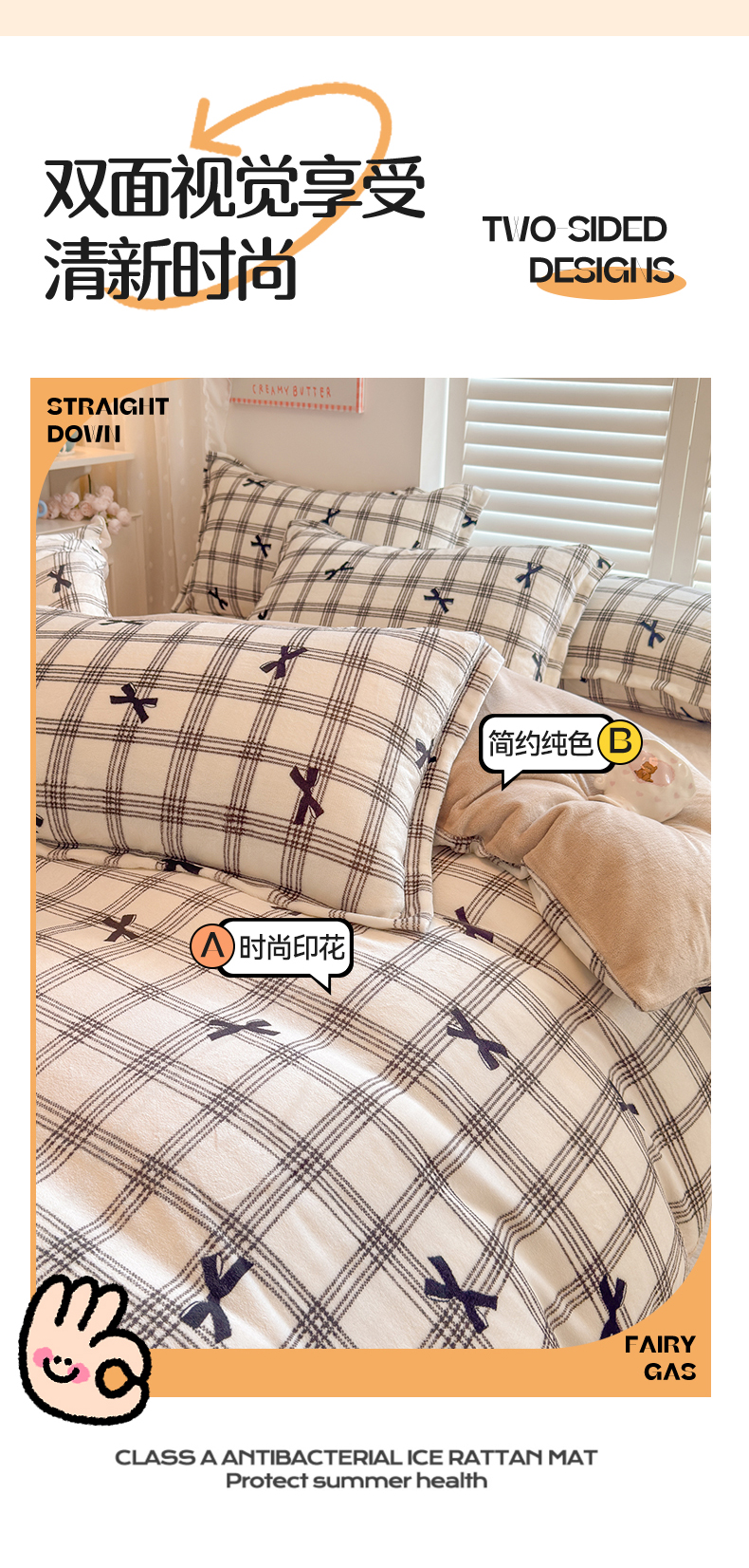 当前位置: 91家纺网 > 商品网购 > 床品套件 > 四件套 > 牛奶绒四件套 > 名兮家居 2025新款卡通时尚风高克重印花牛奶绒四件套 格子蝴蝶结