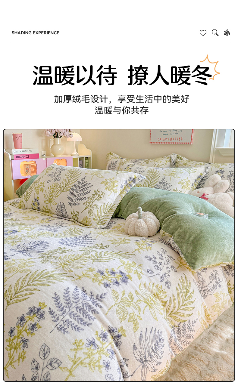 当前位置: 91家纺网 > 商品网购 > 床品套件 > 四件套 > 牛奶绒四件套 > 名兮家居 2025新款卡通时尚风高克重印花牛奶绒四件套 清新物语