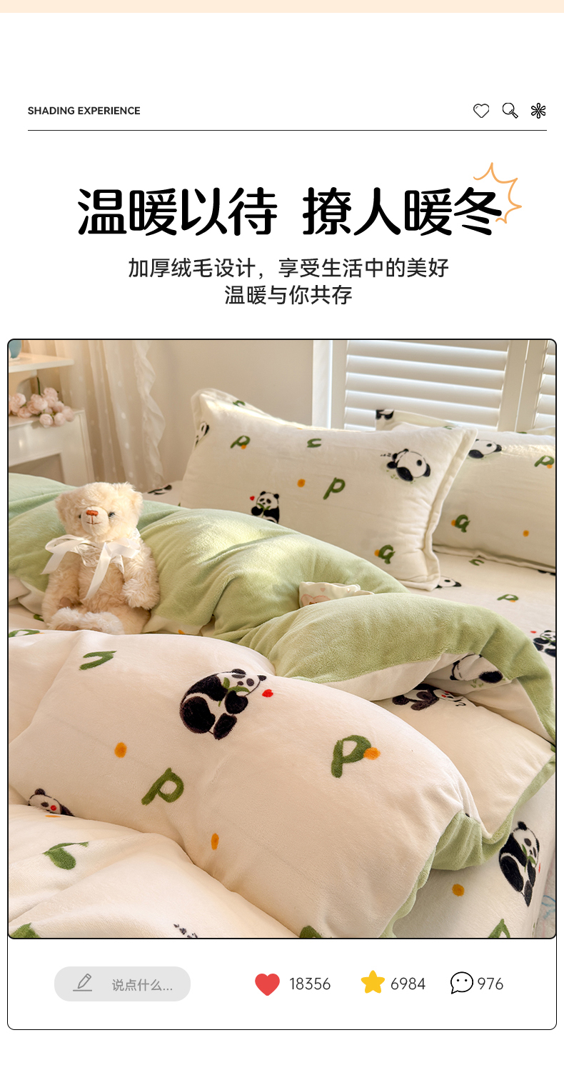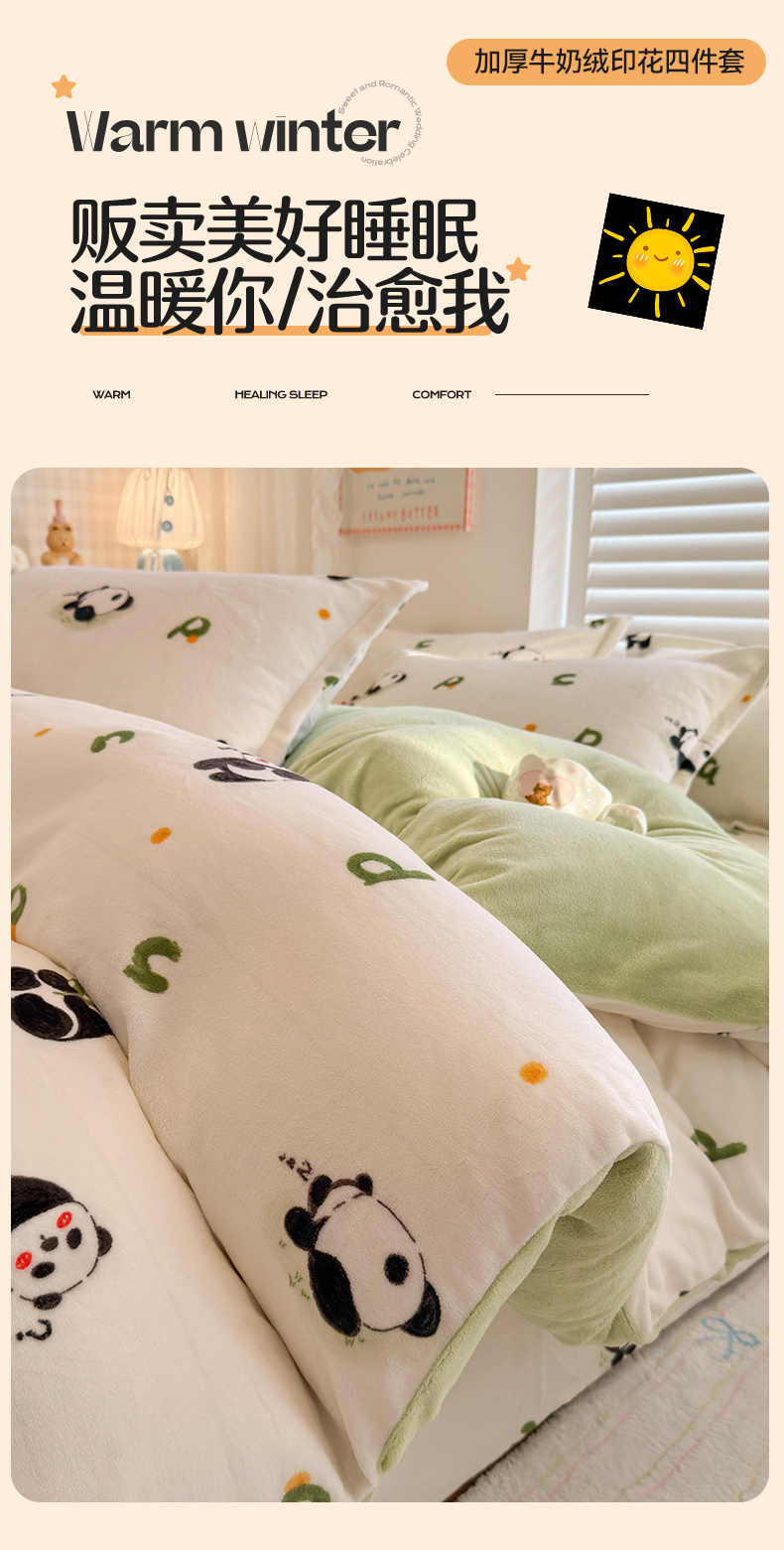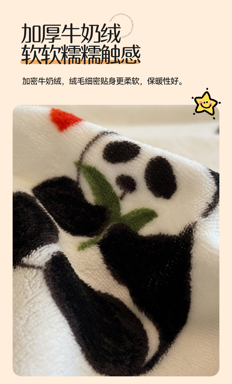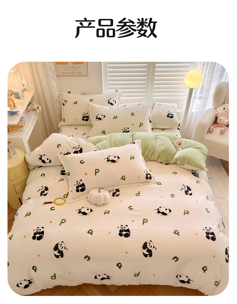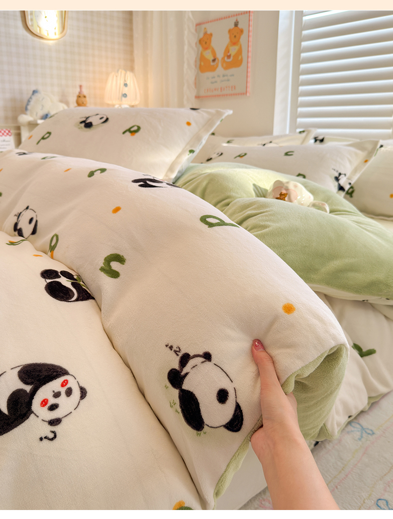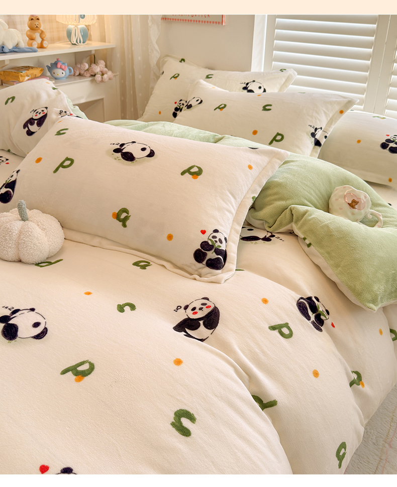 当前位置: 91家纺网 > 商品网购 > 床品套件 > 四件套 > 牛奶绒四件套 > 名兮家居 2025新款卡通时尚风高克重印花牛奶绒四件套 字母熊猫