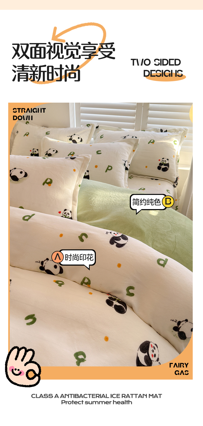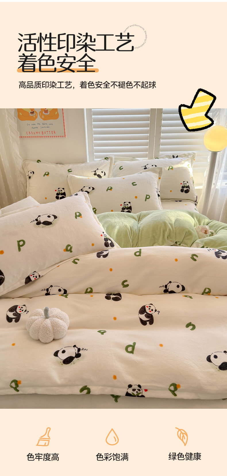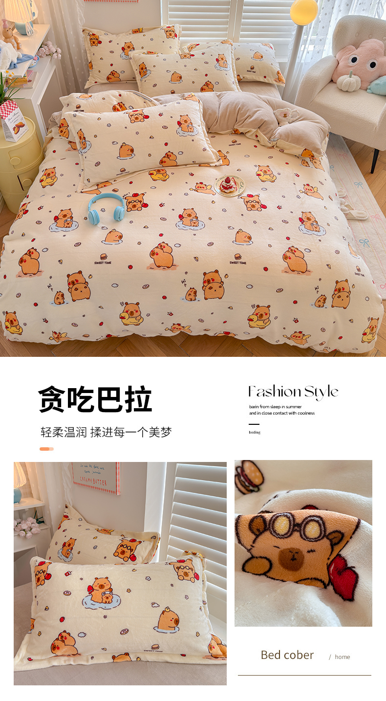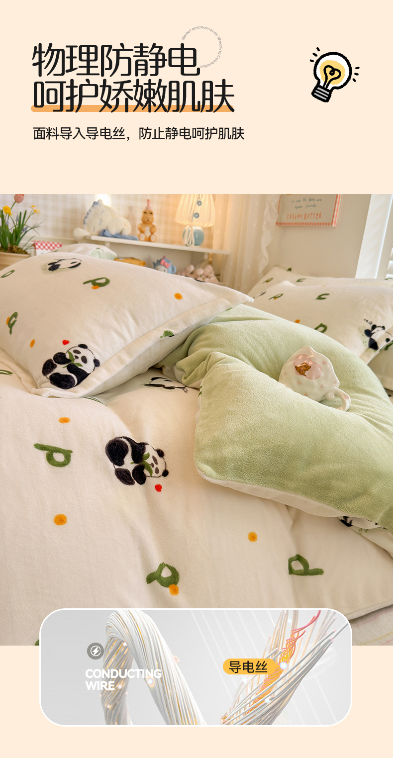 当前位置: 91家纺网 > 商品网购 > 床品套件 > 四件套 > 牛奶绒四件套 > 名兮家居 2025新款卡通时尚风高克重印花牛奶绒四件套 字母熊猫