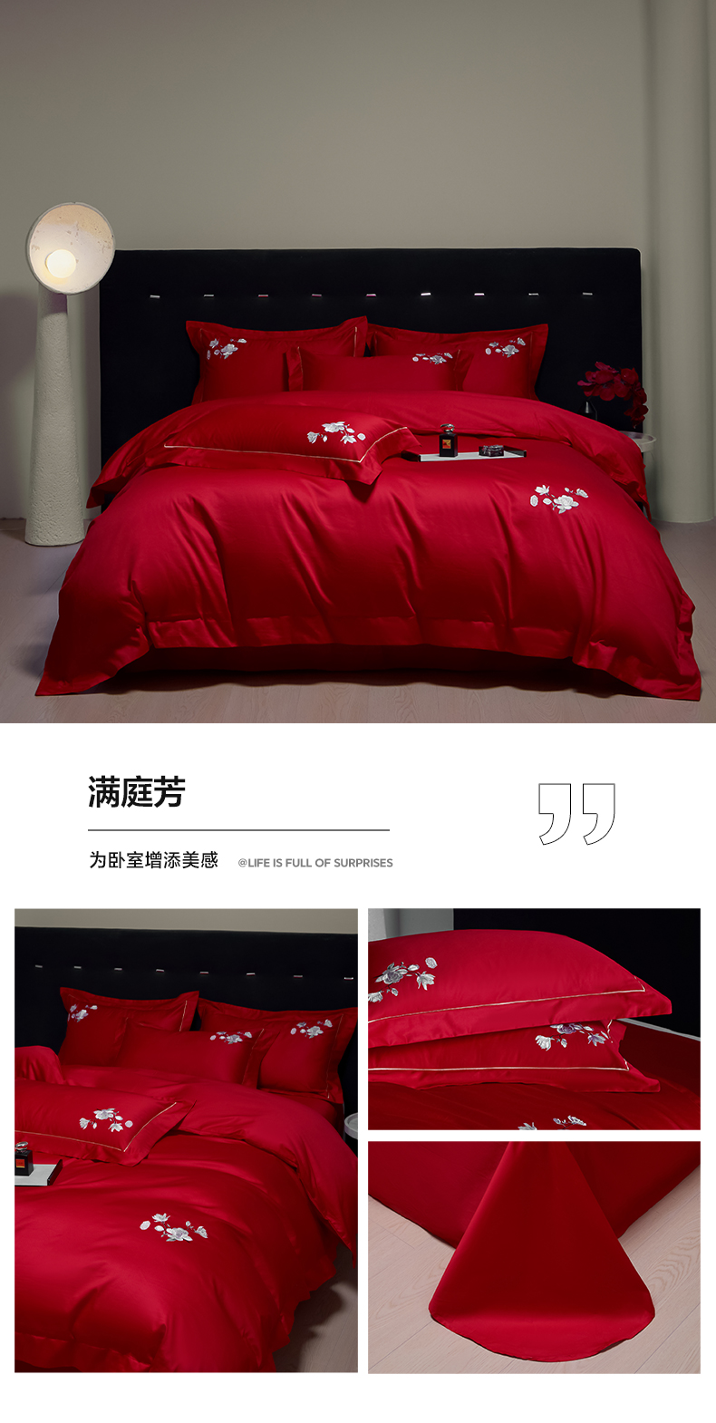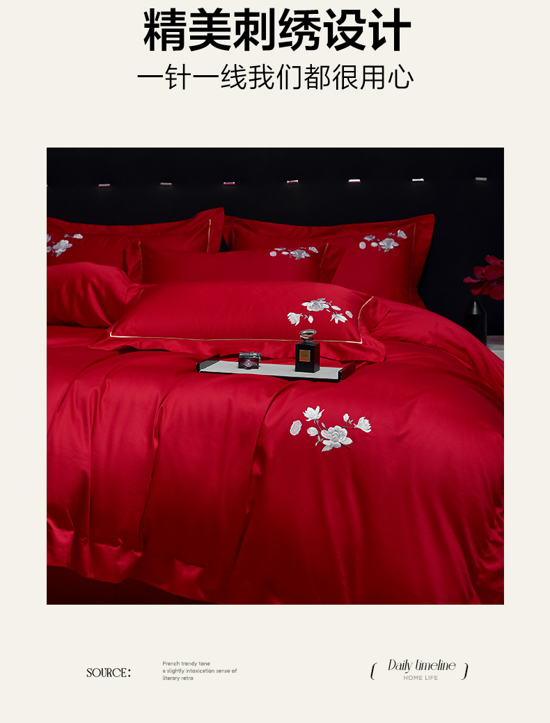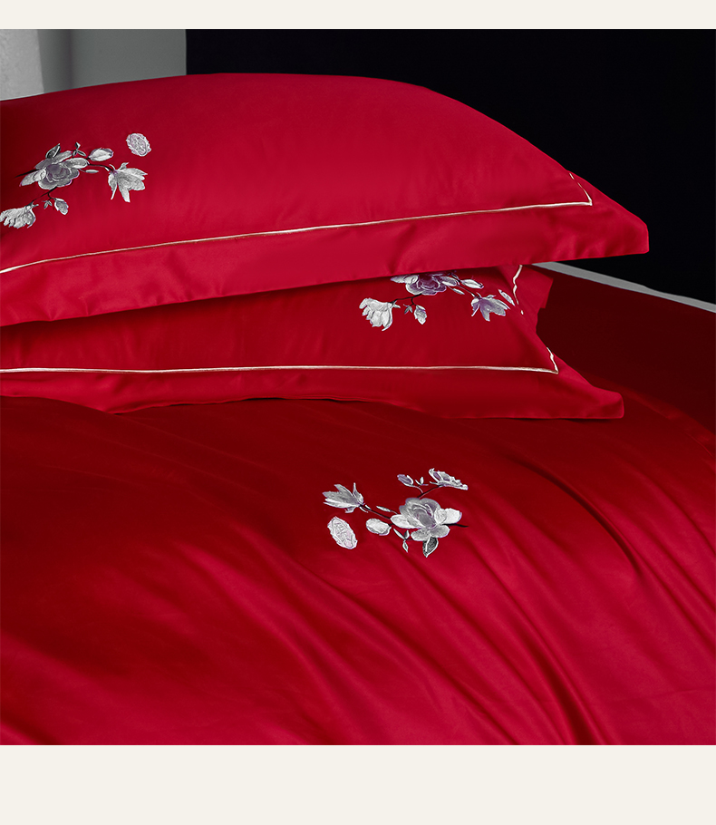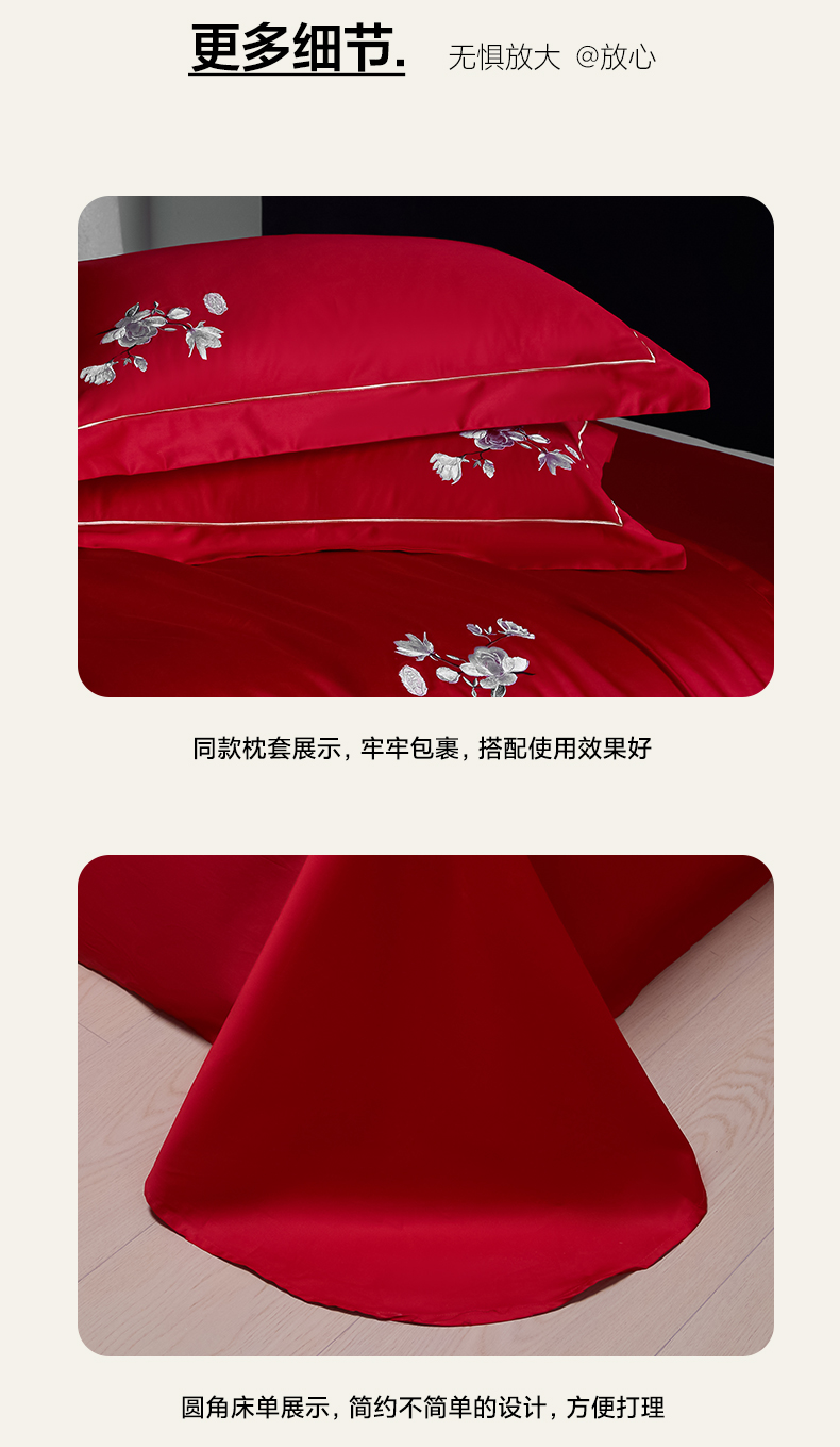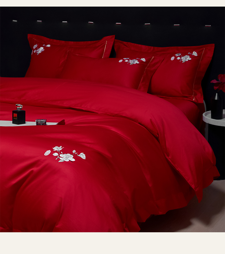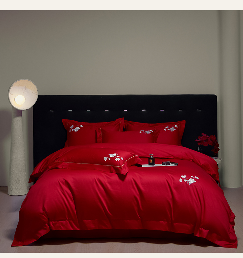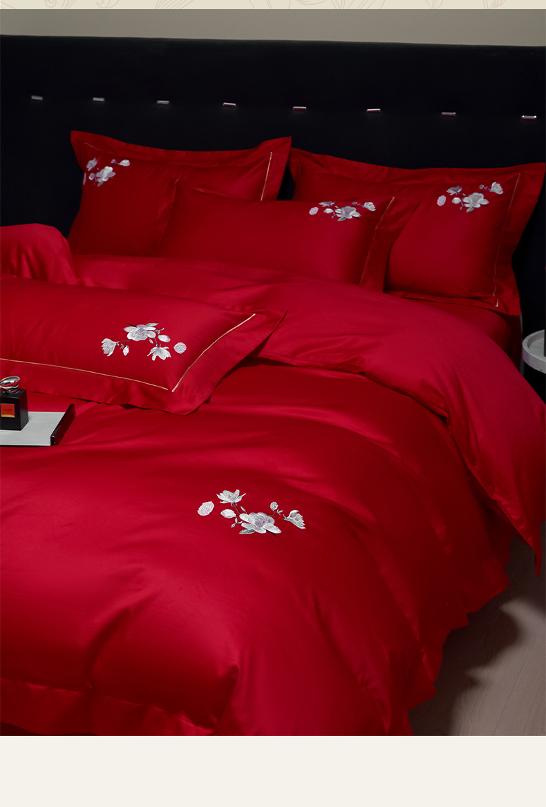 (总)欧乐蒂 2025新款亲肤棉刺绣花边婚庆四件套-浪漫花季,浪漫花季-红,浪漫花季-金